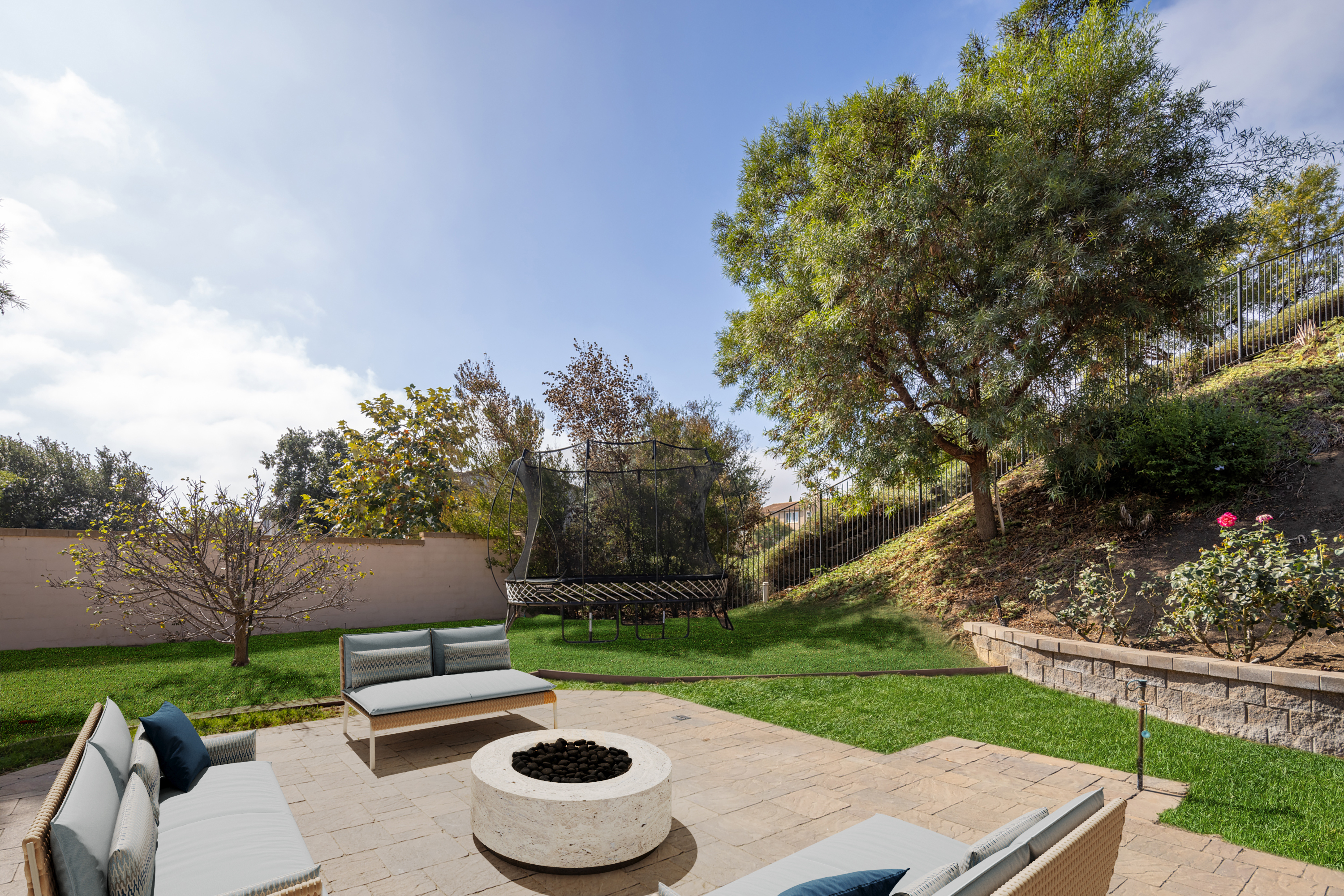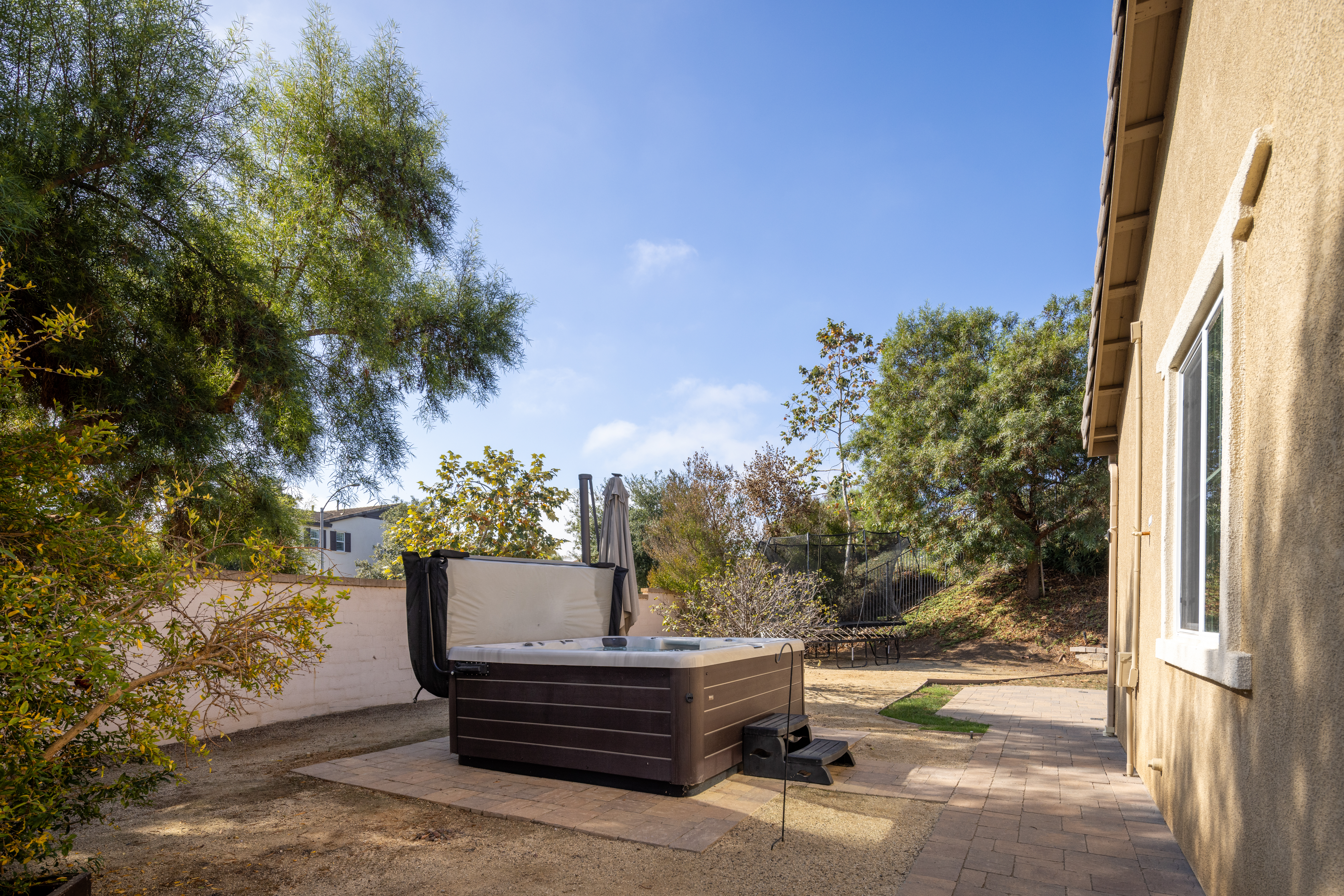 Sprawling single-level home with wraparound backyard, this property is set on one of the largest corner lots in the Arrowood golf community. Many luxury amenities with no Mello-Roos. Gated front courtyard with multiple indoor-outdoor living spaces and an open-concept great room. Kitchen boasts large center island, quartz countertops, stainless appliances, custom glass-inlay backsplash, and abundant cabinetry for storage. Spacious family room with fireplace and sliding doors open to the backyard. Primary ensuite with dual vanity, soaking tub & glass-enclosed shower, and walk-in closet. Step outside to the backyard with pergola-covered patio, hot tub, multiple seating areas, fruit & avocado trees, and a garden with raised planter beds. Other highlights include plantation shutters throughout, central AC, and 3-car garage adding flexibility for gym, workspace, or storage. Community amenities include a Jr. Olympic pool, bbq, clubhouse, playground, walking trails, alongside the Arrowood 18-hole Championship Golf Course. Zoned for the Bonsall Unified School District and walking distance to Bonsall West Elementary. Minutes to Camp Pendleton and close to dining, shopping, parks, and hiking.