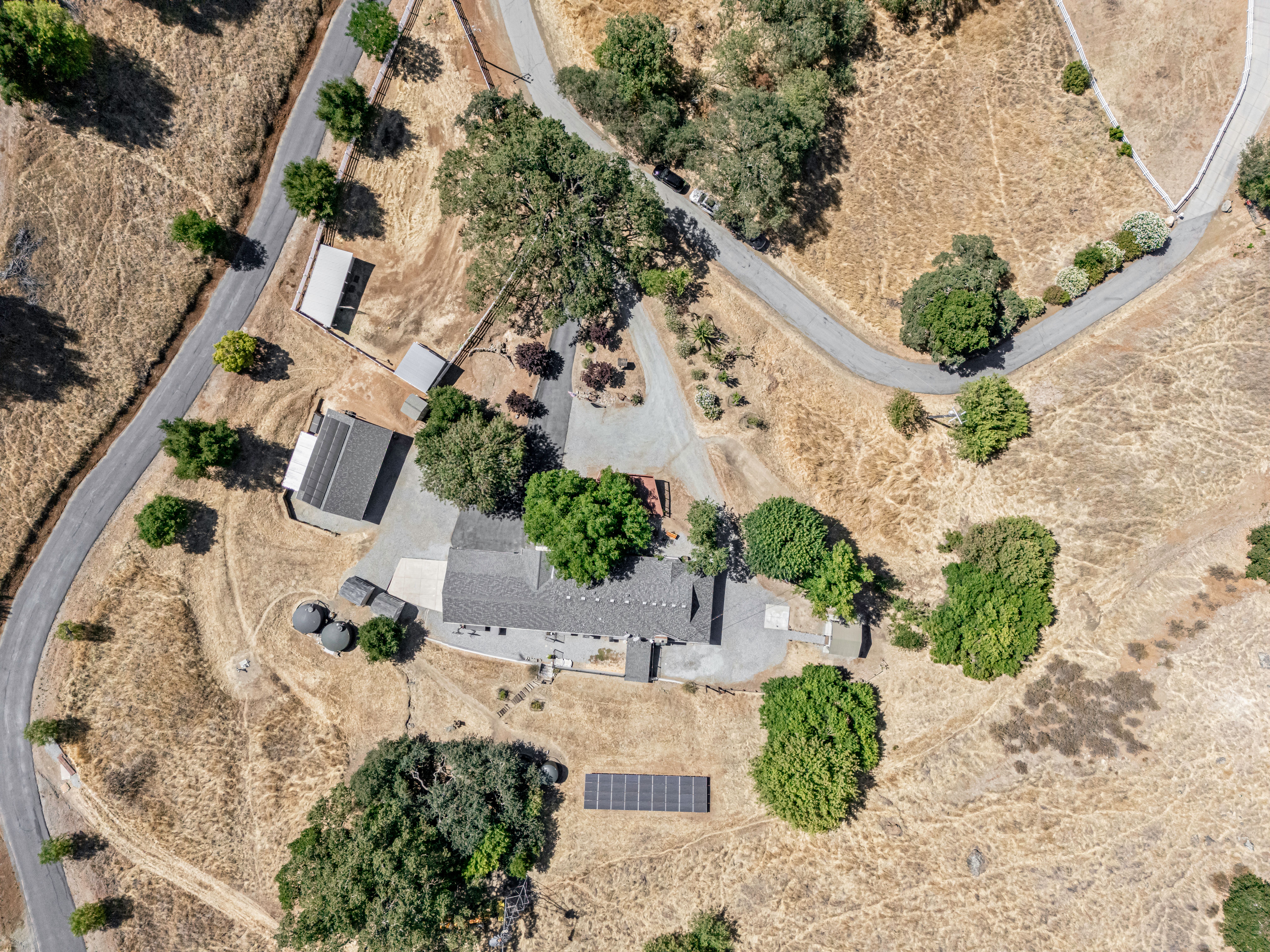 Set on 2 private acres in the scenic hills of Paradise Valley, this ranch-style retreat offers the tranquility of the countryside with convenient access to vibrant downtown Morgan Hill. The 4-bedroom, 2-bathroom home features over 2,750 sq ft with a remodeled kitchen, updated bathrooms, fresh paint, and energy-efficient upgrades including solar and double-paned windows. A spacious covered patio extends living outdoors, while a detached 3-car garage with workshop space adds flexibility. The property also includes animal corrals within a fenced pasture, ideal for hobby farming or livestock. With no HOA, a private well, septic, and a peaceful backdrop of rolling hills, this is a rare opportunity for countryside living near city amenities. 1755 W Edmundson is the address listed on the Tax Roll. 1755 Paradise View Rd is the physical address of the property that can be found via your GPS. - Detached 3-car garage (added in 2008) - 500 sq ft addition (2008 remodel) - Roof pitch changed from 4/12 to 5/12 - Electrical upgraded from knob & tube to Romex - New main and sub electrical panels - Plumbing upgraded to copper - High-efficiency interior and exterior lighting - Home rebuilt in 2018 after full interior gut (post-2015 fire) - New insulation installed throughout (asbestos removed) - Septic system serviced in 2024 - Dual risers with lids installed in 2019 - Dual gate added to leach field - 36 ground-mounted leased solar panels (installed 2014) - 25 garage-mounted leased solar panels (installed 2015) - Two Tesla Powerwalls (installed 2025) - EV charging station at garage - Three wells on property (one with working windmill) - Two 2,500-gallon water tanks behind house - Two 5,000-gallon water tanks next to garage - Redwood deck with 4,000-gallon rainwater cistern beneath - Fruit trees: Plum, Apricot, Apple, Orange - Mature Live Oak, Deciduous, and Scrub Oak trees - Decorative and drought-tolerant landscaping - Pavilion with ceiling fan and propane fire pit - Concrete slab with electrical for future jacuzzi - RV parking near pavilion - ¼ acre fenced pasture with Polyvinyl fencing - Dual metal gates at both ends of pasture - Two run-in sheds - Two Tuff Sheds for additional storage - Flag pole with solar-powered light