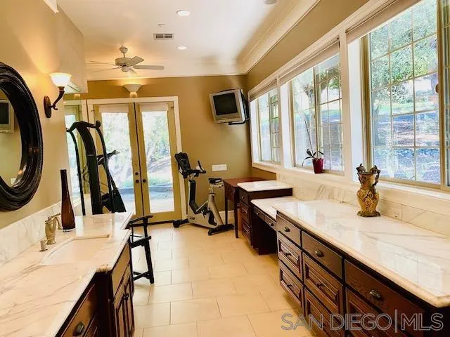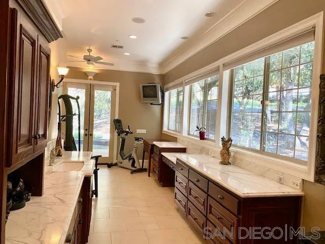 Discover timeless elegance and privacy in this custom-designed Country French Estate on 4.52 acres bordering the prestigious De Luz community. This exquisite 4,303 sq. ft. home features 4 bedrooms, 5 baths, and two private office rooms, offering an exceptional blend of sophistication and comfort. The stunning brick and stone exterior is surrounded by 200+ mature oak trees, creating a peaceful, park-like setting. The gourmet kitchen showcases custom cabinetry, stainless steel appliances, and a 12-foot granite island—a dream for cooking and entertaining. The great room includes a fireplace, wet bar, built-in entertainment center, and full sound system. Elegant hand-scraped oak floors and French doors bring warmth and charm throughout. The main-floor primary suite offers a fireplace, Carrara marble bath, steam shower, soaking tub, and dual walk-in dressing rooms. A second bedroom or office is conveniently located on the first floor. Upstairs features a private guest retreat with two ensuite bedrooms, full baths, kitchenette, and living area. The gated property includes a stamped-concrete driveway, parking for seven vehicles plus an RV, and an outdoor Argentine kitchen with grill, wood-fired pizza oven, sink, and granite counters. Room to add a pool, horse barn, or studio. Ideally located near Temecula Old Town, wineries, shopping, and within the Murrieta School District—this home embodies luxury, privacy, and California living at its finest.