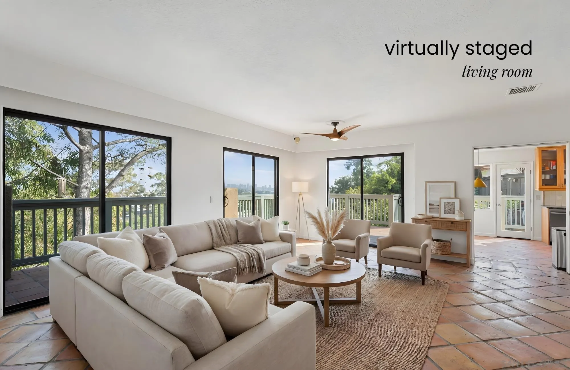 Tucked away in the heart of Point Loma, 3038 Udall Street is a charming Spanish-style retreat offering privacy, versatility, and panoramic city views. This two-story home features 3 bedrooms plus a flexible bonus room, ideal for an office, studio, or guest space. The entry level welcomes you with a bright living area and kitchen that open to expansive decks overlooking the city—perfect for entertaining or quiet evenings outdoors. Also on this level are the primary bedroom and bath, a secondary bedroom, and a guest bath, all framed by picture windows capturing the surrounding trees and views. Downstairs, enjoy wrap-around decks with stunning city vistas, a private bonus room, third bedroom, bathroom, and kitchenette with a separate entrance—ideal for a lock-off studio or ADU for guests or rental income. Perched on a peaceful hillside yet just a short stroll to Liberty Station, this home offers quick access to downtown San Diego, the airport, harbor, beaches, yacht clubs, and award-winning schools. Whether as a primary residence, first home, or lucrative short-term rental, this property embodies San Diego living—sunny, scenic, and centrally located. Listing includes three lots with ample potential to expand or build.