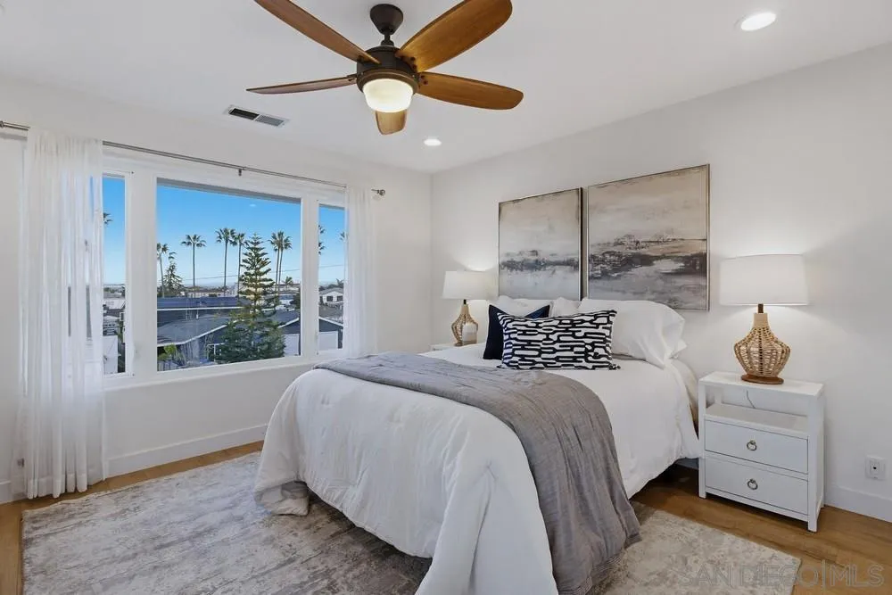 Incredible ocean, bay, nightlight, fireworks & sunset views set the stage for this California Coastal beauty in Point Loma Heights!! Plus there is an assumable VA loan at a great rate! Features include 4br/4ba, a remodeled kitchen w/high-end Forno appliances & quartz counters, vinyl windows & sliders, luxury vinyl flooring, fireplace, HVAC, owned solar, outdoor kitchen, HUGE oversized 2 car garage & optional RV/boat parking. Spacious bedrooms, 1st floor primary, updated baths, family room & tons of natural light. Gorgeous yards w/drought tolerant landscaping, fruit trees, outdoor kitchen, spa & super cool outdoor shower/yoga/Zen retreat. Multiple view decks w/ocean, coastline, nightlights, fireworks & OB's iconic palm trees views! Blocks to the beach, nightlife, cafes, dining & award winning schools. Walk in and fall in LOVE!!!!