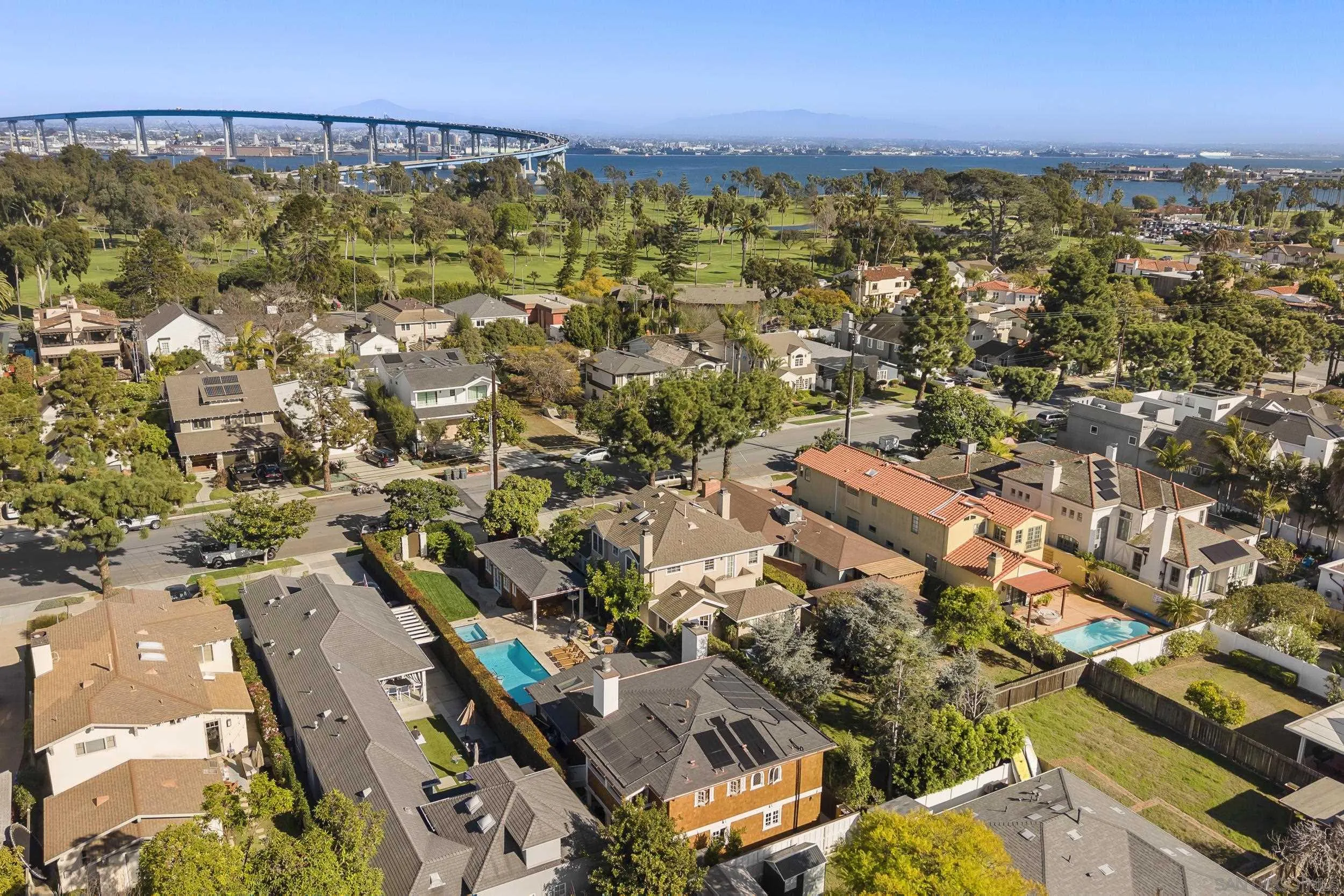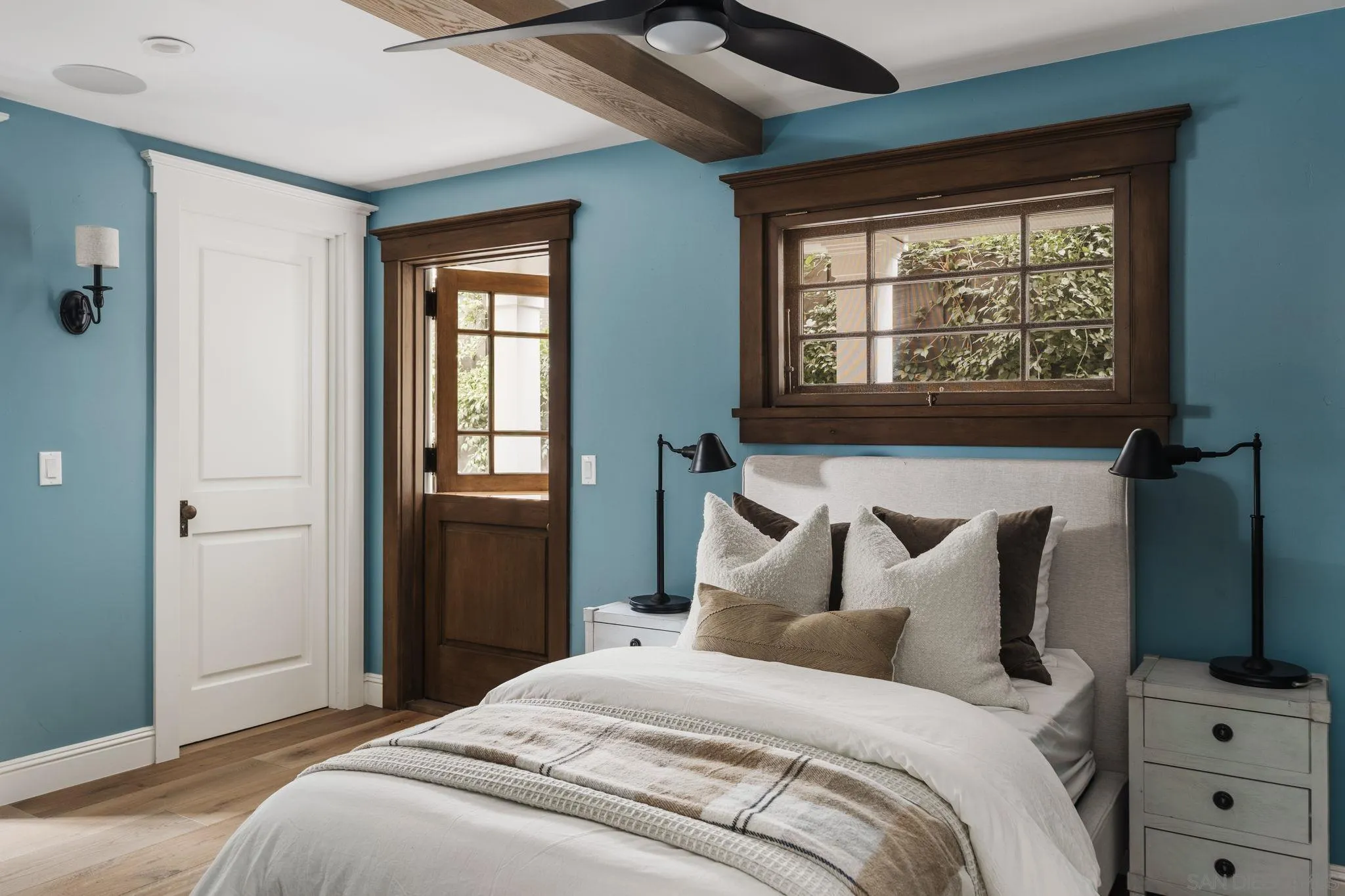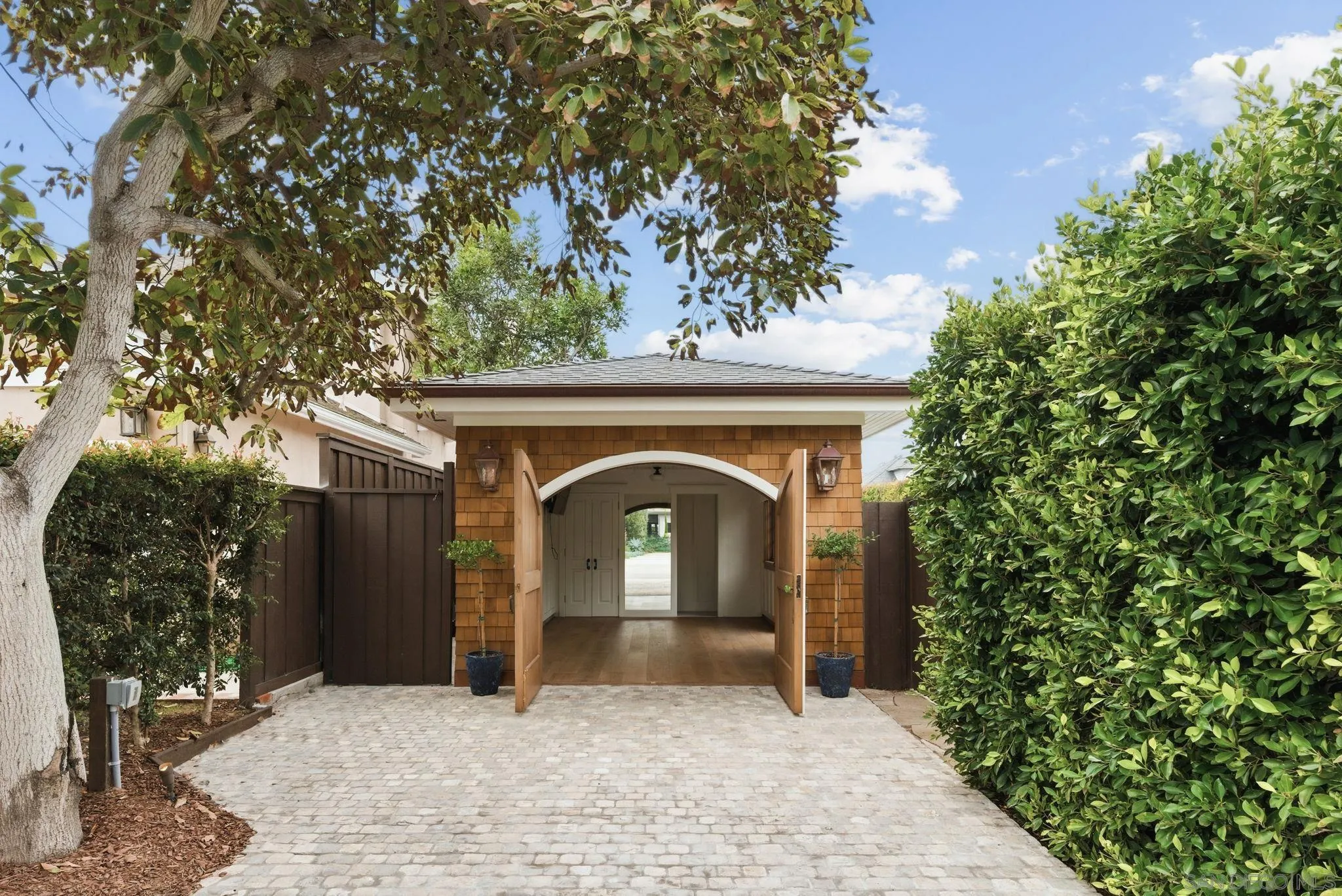 Tucked along one of Coronado’s most coveted tree-lined streets, this masterfully reimagined Craftsman blends timeless coastal charm with the confidence of modern construction. This 3 bed, 1 optional room + office is set on a generous 6,400-square-foot lot in a quiet, storybook stretch of the Village, this cedar-sided residence offers a rare sense of privacy, scale, and history, just moments from the beach, parks, and everyday Village life. Rebuilt with intention and taken fully down to the studs during its 2025 renovation, the home was thoughtfully reinforced from the foundation up and designed to endure. A new roof with copper flashing, all-new plumbing and electrical, a copper-wrapped foundation, and custom alder windows and doors reflect a level of craftsmanship rarely found. Inside, rich architectural details include wood-beamed ceilings, custom leaded-glass skylights and windows, reclaimed wood accents, restored hardware, and bespoke lighting adding warmth and depth throughout. The kitchen overlooks the well-manicured yard and is built with high end appliances, limestone backsplash, bar sink, pantry, and hand-selected, timeless finishes. French doors invite seamless indoor-outdoor living, opening to a tumbled limestone patio with a solar-heated saltwater pool and spa, gas firepit, outdoor dining area, and space for grilling. The main level includes two ensuite bedrooms, a hideaway room tucked behind a bookcase, a laundry room, and powder room with bidet, ideal for entertaining.