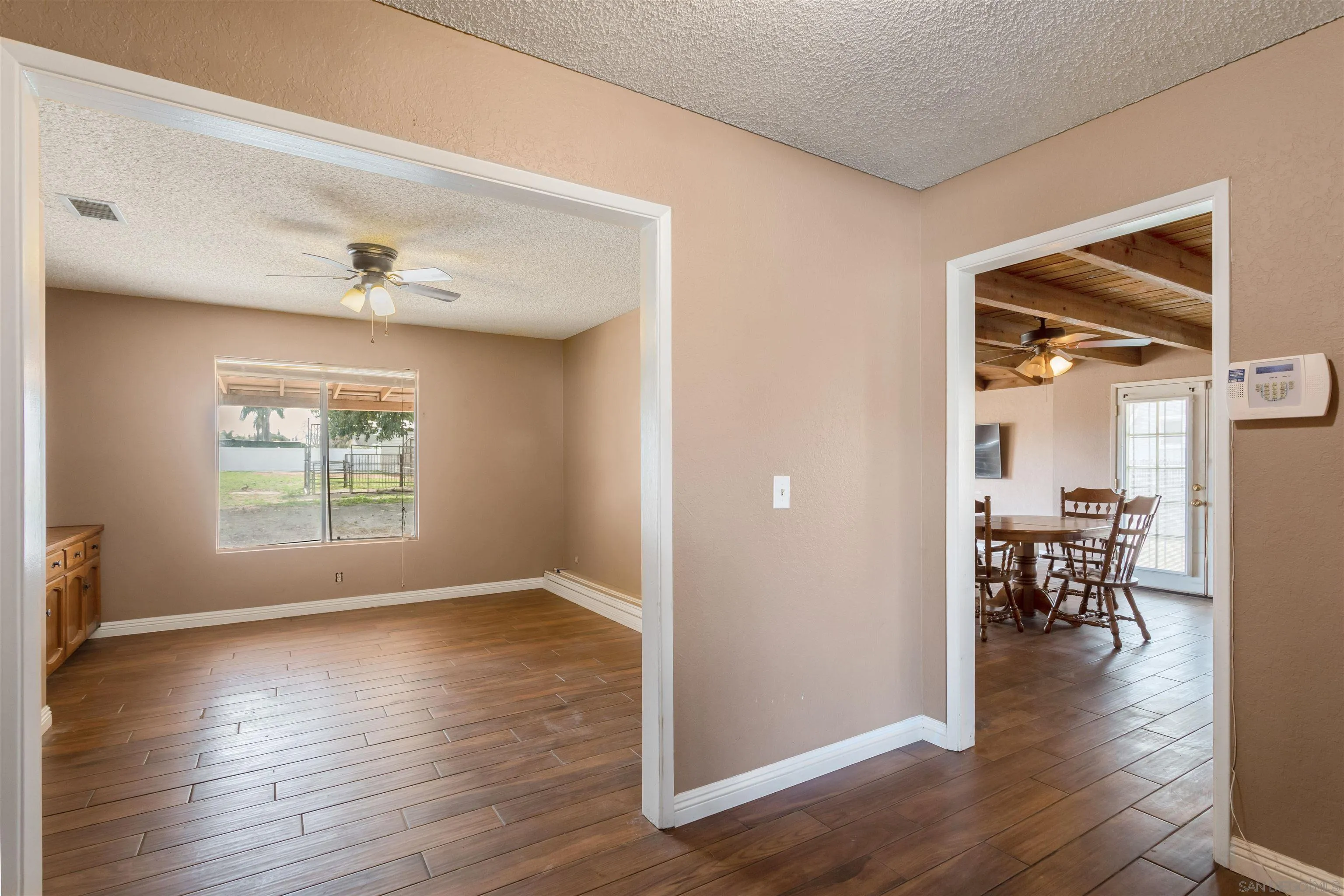 On the market for the first time in nearly 40 years, this spacious 5-bedroom, 2.5-bath home offers over 2,800 sq ft of living space on a half-acre lot on one of Norco's most sought-after streets. The inviting living area features vaulted tongue-and-groove open-beam ceilings and a stunning stone fireplace that anchors the room. Wood-look tile flooring runs throughout, blending warmth with durability. The bright kitchen has updated countertops, white wood cabinetry, stainless steel appliances, and recessed lighting. The oversized primary suite is a true retreat, with its own brick fireplace and a custom tiled Roman shower. Additional highlights include a large laundry room, generous secondary bedrooms, and a flexible floor plan that works for multigenerational living, remote work, or hosting guests. Outside, a 3-car garage and expansive driveway offer abundant parking, while a large detached RV garage at the rear provides ample space for RV or boat storage. In addition, a separate storage shed offers extra room for tools or equipment. The sprawling private backyard is a blank canvas, ready to accommodate a pool, ADU, garden, horse stalls, or an entertainment area. A covered patio offers the perfect spot for morning coffee or evening gatherings. With solid bones and great original character, this home is ready for a buyer to make it their own. Easy access to horse trails, the riverbed, shopping, and dining. A rare offering after nearly four decades.