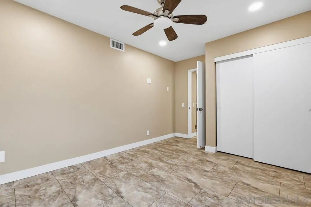 Move-in ready and beautifully remodeled Sea Colony Plan 4 (Shearwater) condo in the heart of Point Loma. Located in the original model-home row of the community, this home enjoys an unusually open feel with the widest sidewalk frontage in the complex and greater privacy from neighbors. The home has been extensively upgraded in 2023–2024 with thoughtful, high-quality finishes throughout. Nearly every surface has been refreshed, including Travertine-style tile flooring throughout, new lighting, recessed lights, ceiling fans, doors, and fixtures. The remodeled kitchen features new appliances, countertops, backsplash, sink, and cabinetry updates. All three bathrooms have been fully renovated with modern fixtures and easy-clean DreamStyle showers .Additional upgrades include quad-pane Quiet Home Program windows and doors, new Juliette door, DreamStyle dual pane bay window, upgraded electrical panel, new plumbing connections, water filtration system, and a new water heater. Vaulted ceilings, abundant natural light, and two private patios create a bright coastal atmosphere throughout the home. Enjoy the convenience of a spacious two-car garage with storage and in-unit laundry. The Sea Colony community offers resort-style amenities including pool, spa, tennis & pickleball courts, basketball courts, playground, clubhouse, and picnic areas. Ideally located next to shopping, restaurants, Point Loma Library, and schools, and just 1.5 miles to Ocean Beach Dog Beach with easy access to the airport and downtown. Quiet location away from the community center with peaceful surroundings.