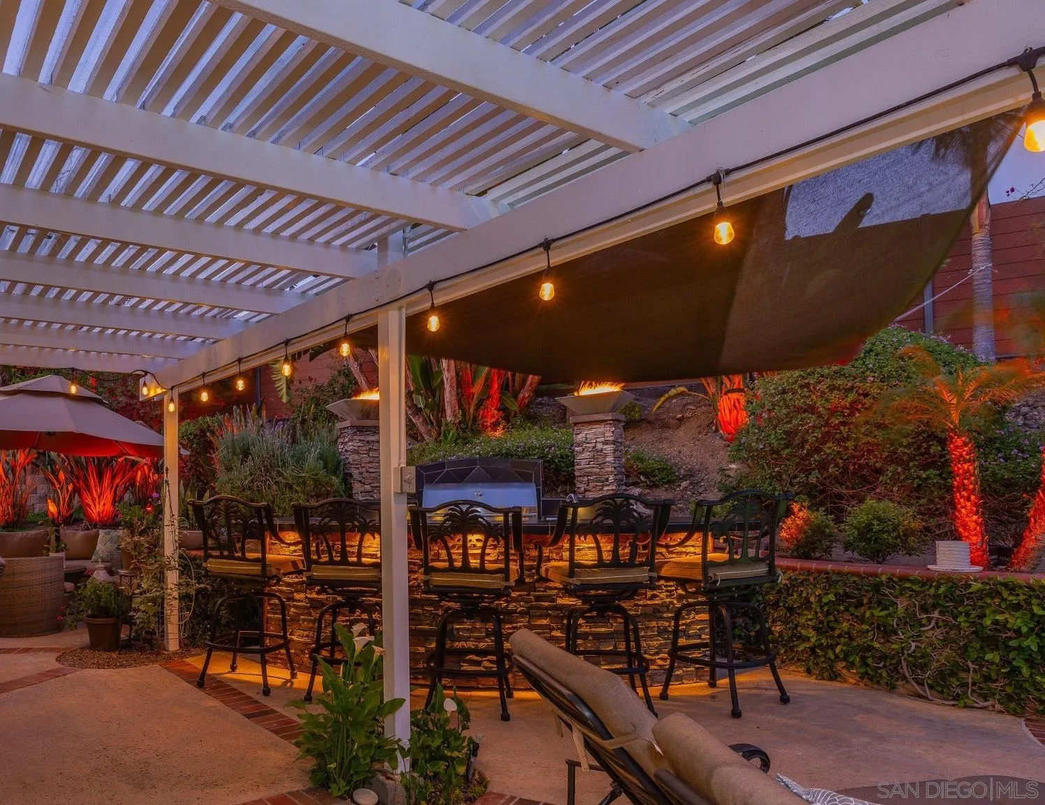 Entertainer’s Dream with Resort-Style Backyard, Ultimate PRIVACY, in Prime Location! Private oasis nestled against the serene Black Mountain Reserve. This bright, open-concept home features vaulted ceilings, 4 bedrooms, 3 full baths (1 bedroom and bath located on the 1st level), and an oversized bonus room—ideal for a home office, gym, or media space. Enjoy true indoor-outdoor living in the stunning backyard, complete with a sparkling pool, spa, waterfall, custom BBQ island with premium Delta Heat appliances, bar seating, customizable uplighting throughout, mature, tropical palm trees, bird-of-paradise, and other plants – the perfect setting for hosting or relaxing. The spacious 3-car garage offers abundant storage with built-in cabinetry, overhead racks, and a workbench. Retreat to the tranquil, island-inspired primary suite, featuring a distinctive bamboo ceiling detail, Brazilian Tigerwood flooring and a custom walk-in shower with rain shower. The updated kitchen includes new stainless steel appliances and a custom bar with a wine fridge. Located in the highly sought-after PUSD school district, minutes from Carmel Ranch Shopping Center, dining, and convenient access to I-15 and Hwy 56. No HOA or Melo Roos! Owned solar! Recent double-paned windows throughout. Dual-zone climate control.