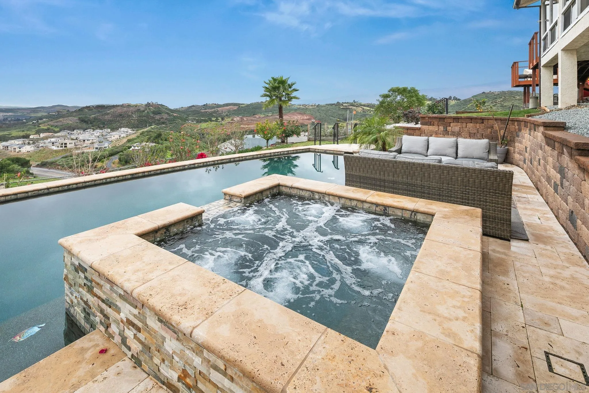VIEWS! This home is all about the VIEWS! Welcome home to this stunning West-facing estate with panoramic VIEWS and resort-style grounds. Enjoy SWEEPING VIEWS & breathtaking sunsets every evening, where acres of open space create a rare sense of privacy and serenity. A veranda spans the entire home, providing an ideal setting for sunset dining, entertaining, or simply enjoying VIEWS that stretch for miles. The outdoor spaces are a true oasis, featuring a saltwater pool w/ spa, a fire pit, an outdoor pizza oven, a 4-hole putting green, and ample space for endless possibilities, including planting your own vineyard. A charming children’s playhouse and playground add whimsy, while mature landscaping, 22+ fruit trees, and vegetation create an environment perfect for sustainable living. Inside, the open floor plan encompasses 3,106 square feet with 3BD/3.5BA, highlighted by hardwood floors and VIEWS from every window. The large primary bedroom retreat offers peaceful VIEWS and a spacious walk-in closet. The custom kitchen is designed for both function and inspiration, featuring a large center island, granite countertops, and stainless steel appliances, ideal for creating culinary delights and entertaining. Solar is paid. An electric stair-chair provides convenient access from home to garage. $200K in home improvements has been invested into the property, enhancing comfort, quality, and long-term value. Across the valley is the luxury Cal-a-Vie Health Spa and Vista Valley Country Club with an 18-hole championship golf course. Experience the magic of this one-of-a-kind oasis.