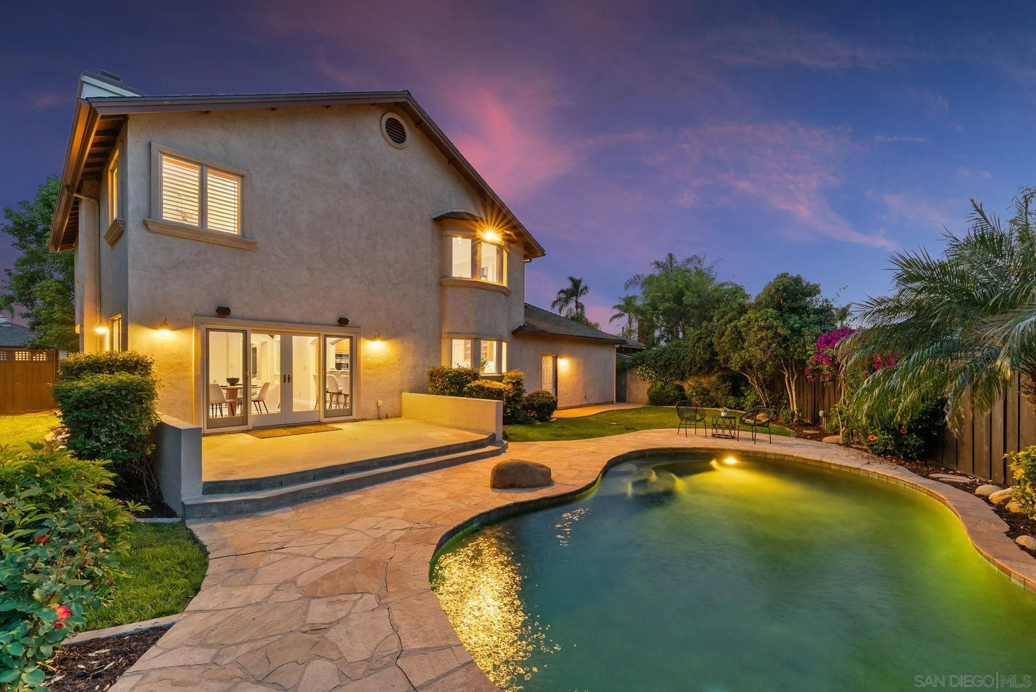 Tucked away on a quiet street in the highly desirable Talmadge neighborhood, this beautifully maintained residence offers the perfect blend of style, efficiency, and indoor-outdoor living. Framed by mature landscaping and inviting curb appeal, the home welcomes you with rich hardwood flooring, abundant natural light throughout, and a functional, well-designed layout ideal for both everyday living and entertaining. The main living spaces flow effortlessly from the formal living and dining areas into a spacious kitchen with abundant cabinetry, generous prep space, and a large center island that opens to a warm and inviting family room. Expansive windows and sliding doors create a seamless connection to the backyard, enhancing the home’s bright and airy feel. Upstairs, the oversized primary suite serves as a true retreat, featuring soaring ceilings, a cozy fireplace, and a private sitting area. Additional bedrooms offer flexibility for guests, a home office, or growing households. Step outside to your own private oasis—complete with a sparkling pool, tranquil waterfall feature, and lush landscaping—ideal for relaxing, entertaining, and enjoying San Diego’s year-round sunshine. The combination of privacy, generous lot size, and thoughtful layout makes this home a rare find. Additional upgrades include paid-off solar, a Tesla battery backup system, newer roof, and newer HVAC, offering both peace of mind and long-term energy efficiency. Located in one of Metro San Diego’s most charming and centrally located communities of Talmadge!