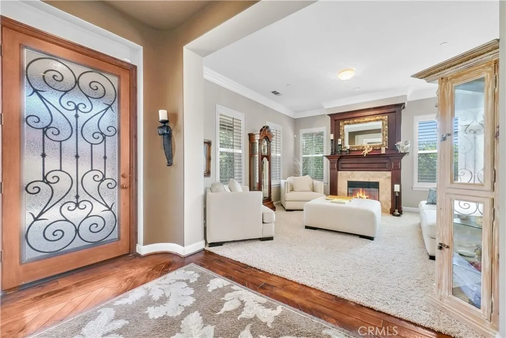 Welcome to Carriage Manor and currently the largest estate available in the beautiful City of Rancho Cucamonga, this magnificentresidence is nestled on a quiet cul-de-sac in the coveted Bridlewood Estates community. Set on overa half acre lot, this property boasts 6 bedrooms, 6 baths, and multiple entertainment areas, offering over 6,690 square feet of unparalleled grandeur.As you drive past the private gates, you are greeted by impeccably landscaped grounds that elevate the home's exceptional curb appeal. Stepping through the custom front door, youll discover an equally stunning interior showcasing the finest finishes and meticulous attention to detail. From soaring ceilings, exquisite millwork, and rich hardwood floors, every element has been thoughtfully designed.The kitchen, a culinary enthusiasts dream, with custom cabinetry, natural stone countertops, a butler's pantry AND a wine vault.It seamlessly opens to the family room, offering an open-concept living space. Exquisite crown molding, and trey ceilings enhance the dining rooms refined atmosphere, ideal for intimate celebrations. Afterward, enjoy nightcaps in the sophisticated wine room. The mainfloor is complete with one bedroom with an en suite bath, convenient for outof town guests.Upstairs you'll find your massive primary suite featuring a large sitting area, fireplace, and walk in closet. Outdoors you can enjoy entertaining guests in the screened-in porch or private courtyard featuring a fireplace,you can truly enjoyyouroutdoorspace all year long. Thebackyard is complete with a pool and spa, fire pit, a half co