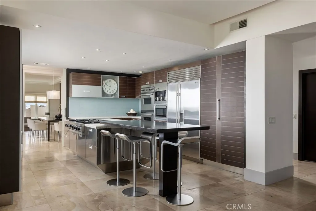 Situated within the prestigious guard-gated enclave of Bear Brand Ranch, this exceptional property awaits, within its own private gated compound, boasting breathtaking views of the ocean and city lights nestled in the valley below. As you step through the private gate, a grand motor court and verdant landscaping extend a gracious welcome. Upon entering, guests are welcomed by a grand entrance featuring dual stone-wrapped floating staircases, unveiling an extraordinary modern masterpiece. The main level offers a plethora of entertainment spaces, including a grand formal living area, and a cozy family room complete with an indoor bar opening to an entertainer's dream backyard. The outdoor area offers an array of amenities, including a pool, inviting spa, a stylish outdoor bar complete with a built-in BBQ, convenient pool bath facilities, and a cozy fire pit area for gathering and relaxation. Ascend to the upper level and indulge in the lavish primary retreat, where panoramic views await alongside a sprawling seating area, a capacious walk-in closet, dual vanities, a luxurious jacuzzi tub, and your own private balcony. Accompanying this haven are three additional secondary bedrooms, along with a well-appointed gym featuring a soothing sauna, ensuring an unparalleled experience of luxury and comfort. Other notable features include a private office, a 1,200-bottle temperature-controlled wine cellar, an Elevator servicing both floors, and a convenient main floor bedroom.