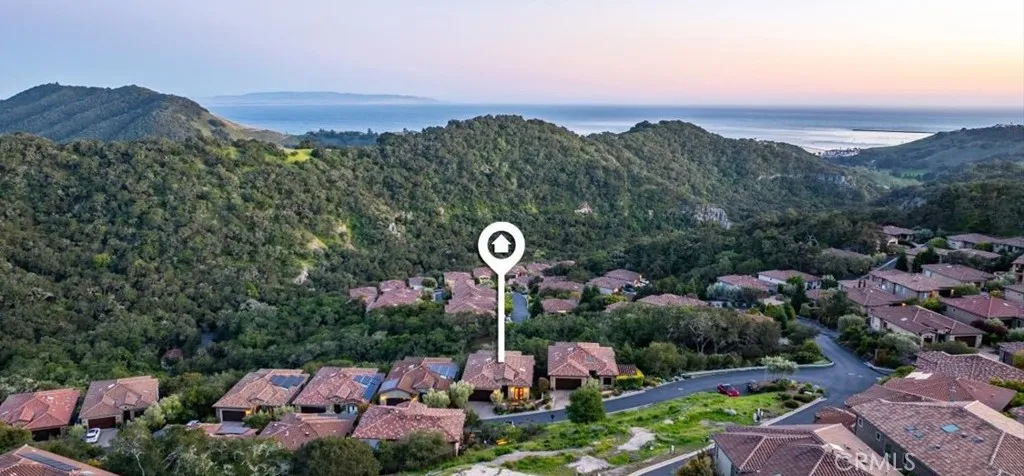 Perched in one of the most coveted enclaves on Californias Central Coast, 2865 Rock Wren Lane is a rare gem that blends coastal luxury with serene seclusion. Nestled within the exclusive, gated, and guarded community of Kingfisher Canyon, this home offers breathtaking views of rolling hills, valleys, and the Pacific Ocean. The community is golf-cart-friendly and features nearly 5 miles of hiking and walking trails with beach access. Built with high-end construction and luxurious finishes, this residence exemplifies refined coastal living. From the moment you arrive, you're greeted by impeccable landscaping and impressive curb appeal. The gated front courtyard offers a private outdoor space with turf, garden beds, a gas fireplace, and French doors that open into the dining area. Step inside to discover an open, light-filled interior with soaring ceilings, elegant design, and panoramic views throughout. The entry level is designed for seamless living and entertaining, featuring an open floor plan with a spacious living room, a view deck, and a kitchen that connects effortlessly to the dining room. The kitchen boasts stainless steel appliances, abundant cabinetry, a large breakfast bar, walk-in pantry, and generous counter space. Custom features include recessed blinds, mitered corner window, art display niches, and chambered for an elevator. The entry-level primary suite features a grand sitting nook with a picture window framing ocean views. The ensuite bath includes stone finishes, a jetted tub, frameless shower, dual vanities, a makeup station. Downstairs offers a large se