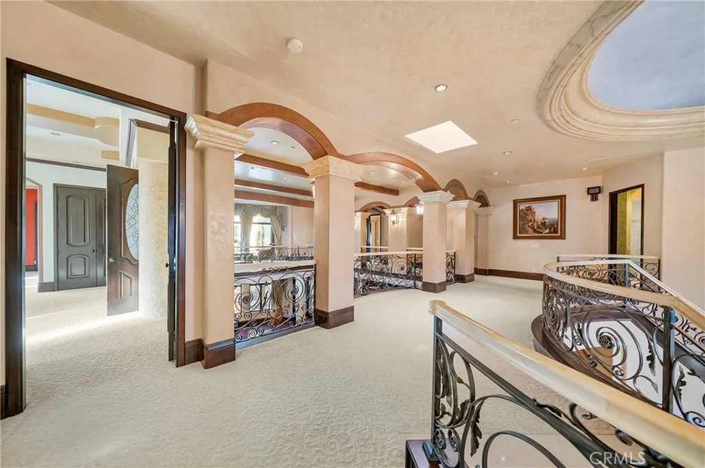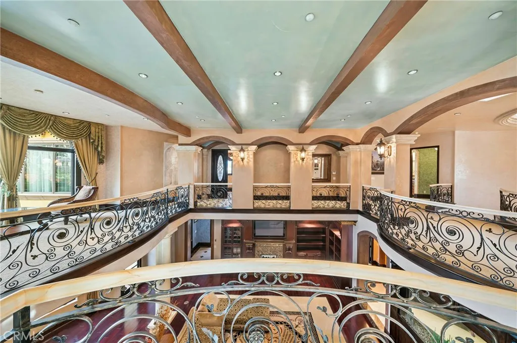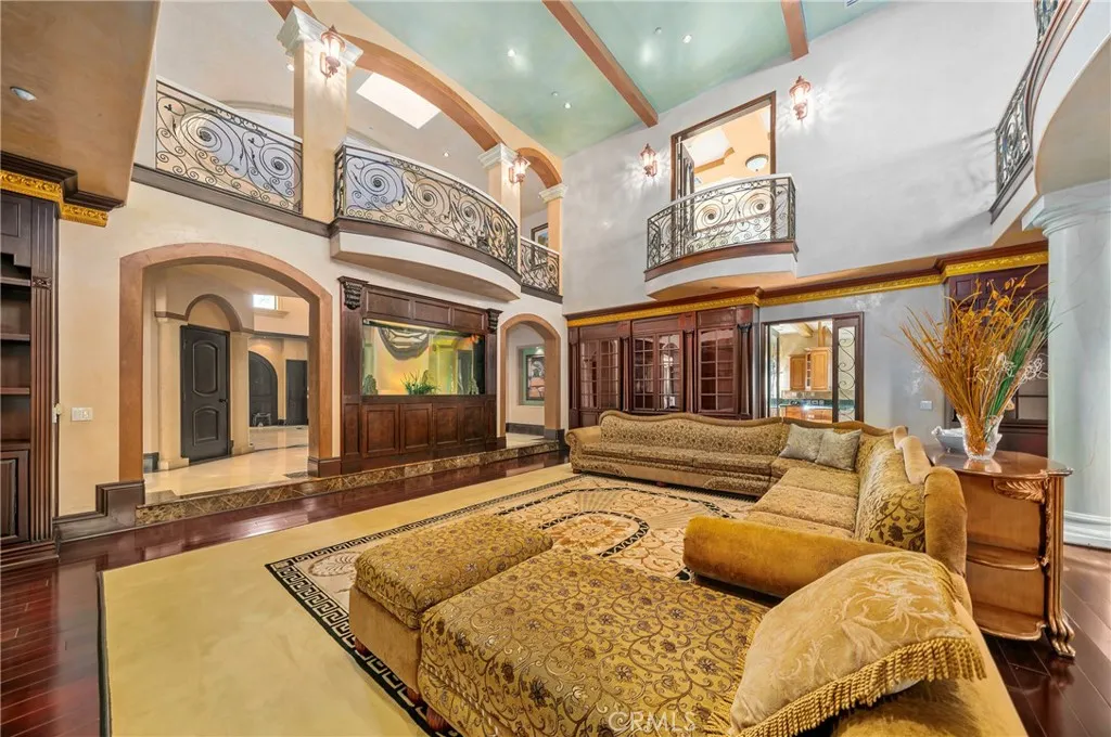 Nestled in one of Arcadias most prestigious neighborhoods, this magnificent south-facing Mediterranean-style estate offers unparalleled luxury and convenience. Set on a quiet street, yet just minutes from Westfield Mall, Santa Anita Racetrack, the Arboretum, Huntington Library, and Caltech, this home provides the perfect balance of privacy and proximity to key amenities.Upon entering, a grand dual marble staircase and exquisite Venetian plaster walls set the stage for timeless elegance. The home features three fireplaces, a spacious gym with a wet bar and film projector, and a breathtaking saltwater fish tank as its centerpiece. Outside, a tranquil Koi pond and resort-style swimming pool, thoughtfully designed with optimal Feng Shui, offer a serene escape.The expansive family room includes a built-in entertainment system and a stunning double-sided fireplace, ideal for hosting gatherings. The gourmet kitchen is equipped with a separate wok kitchen and walk-in pantry, catering to all culinary needs with ease. The backyard retreat is an entertainers dream, featuring a built-in BBQ, swim-up bar, and premium surround sound system, making it perfect for both entertaining and relaxation. This estate includes five luxurious suites (including one on the main level), two libraries (one inside the master suite), and two laundry rooms (one upstairs and one downstairs). Climate control is effortless with five zoned air conditioning units, allowing for personalized comfort in every room. The five-car garage offers secure, coded access for ultimate convenience. Broker/Agent: Please note