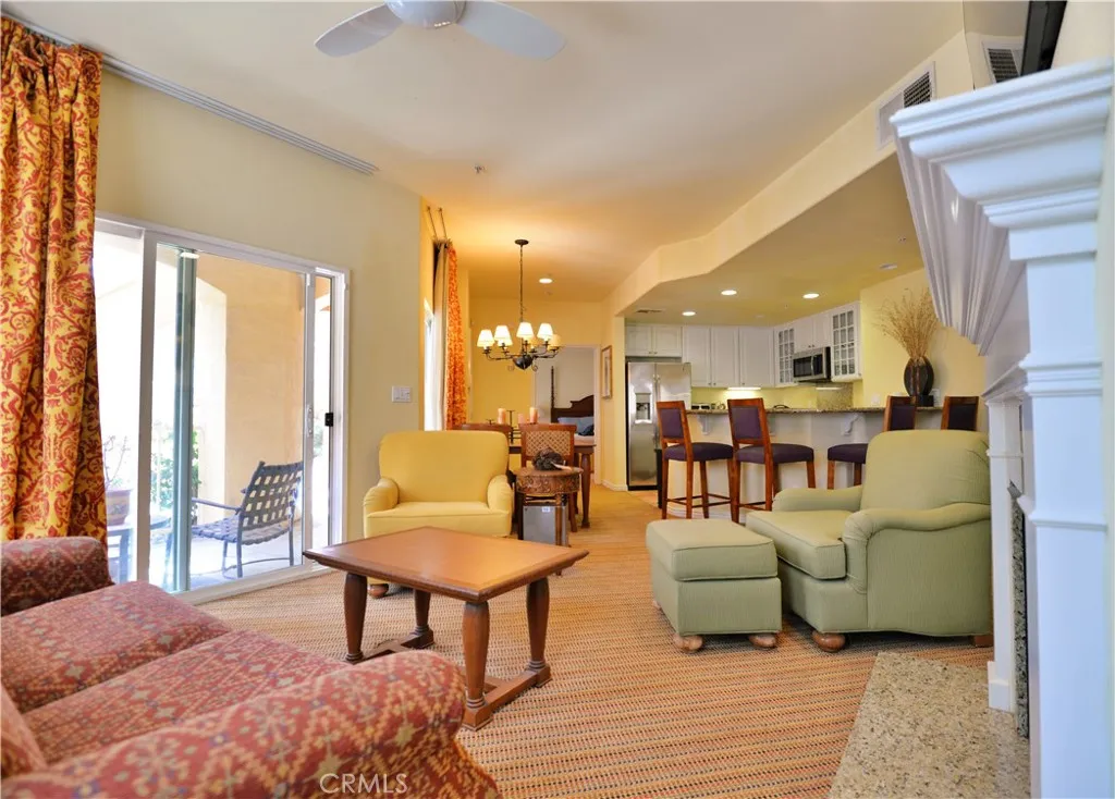 Priced below market value for sales within this community!! A great opportunity for a new owner. Welcome to Desert Villas! A sought after community adjacent from world renowned Tennis Gardens. This unit is ground level an central to all the community has to offer - large pool with an abundance of lounge chairs, spa, laundry, gym and professionally maintained walkways throughout. Surrounding the community, you'll find award winning restaurants, farmers market, shopping and a nearby dog park. South of this community you'll find Old Town La Quinta; offering a variety of boutique artisan shops, casual and fine dining. The unit itself is well designed for the traveler in mind or full time residence. A unique split floor plan is complete with two master suites and a 1/2 bath in living room for 3 total bathrooms. The master suite offers large windows, a tray ceiling with fan, oversized soaking tub, dual sinks, granite counters, white cabinetry, custom lighting, walk in tiled shower and stackable laundry. Second master offers tray ceiling with fan, mirrored closet, walk in tiled shower, single sink, granite countertop, white cabinetry and sliding glass door onto additional patio. Notable features - fully equipped kitchen with stainless steel appliances, granite countertops, two upper display cabinets (glass doors) large drawers and cabinets and recessed lighting. Living room is surrounded by natural light, built in cabinetry, electric start gas fireplace and sliding door onto primary patio. Property is sold furnished.