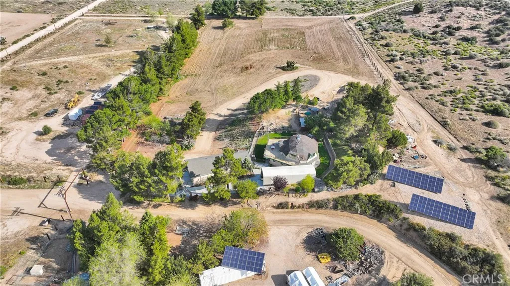 Dreaming of a life where you can embrace the beauty of rural living without giving up modern conveniences? This one-of-a-kind property in Summit Valley, nestled in the county area of Hesperia, is your chance to live off the land while staying just minutes from major shopping centers, top-rated schools, and only a 20-minute drive to Rancho Cucamonga.Imagine waking up to the peaceful sounds of nature, gathering fresh eggs from your own chickens, and harvesting fruits and vegetables from your established garden with fruit-bearing trees and raised beds- all with automatic irrigation, knowing your water bill is practically nonexistent thanks to a 510-ft deep community well shared by only four parcels, & your electricity costs are covered by 64 fully paid-off solar panels. Sustainable living at its finest! Step inside the charming main home with 4 bedrooms, each equipped with its own mini-split heat & AC unit. The primary suite offers a peaceful retreat, complemented by two additional bathrooms, a convenient half-bath upstairs, and an indoor laundry room with ample storage. Need extra space? A cozy loft awaits- perfect for a home office, playroom, or craft haven. But thats not all. A 900sqft apartment above the shop offers endless possibilities. Full bedroom, bathroom, kitchen, living room, & laundry hookups, ideal for hosting guests, multi-generational living, a home business, or even as a rental for added income. The apartment is accessible from both the shop and an exterior entrance, providing flexibility & privacy. The propertys 4.1 acres are brimming with opportunities. Full