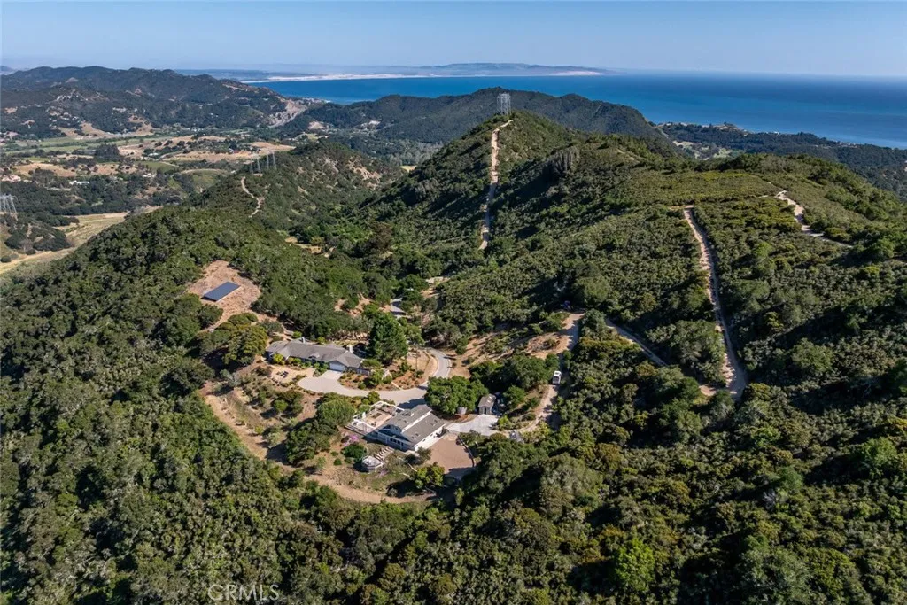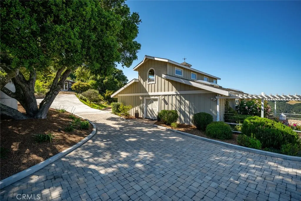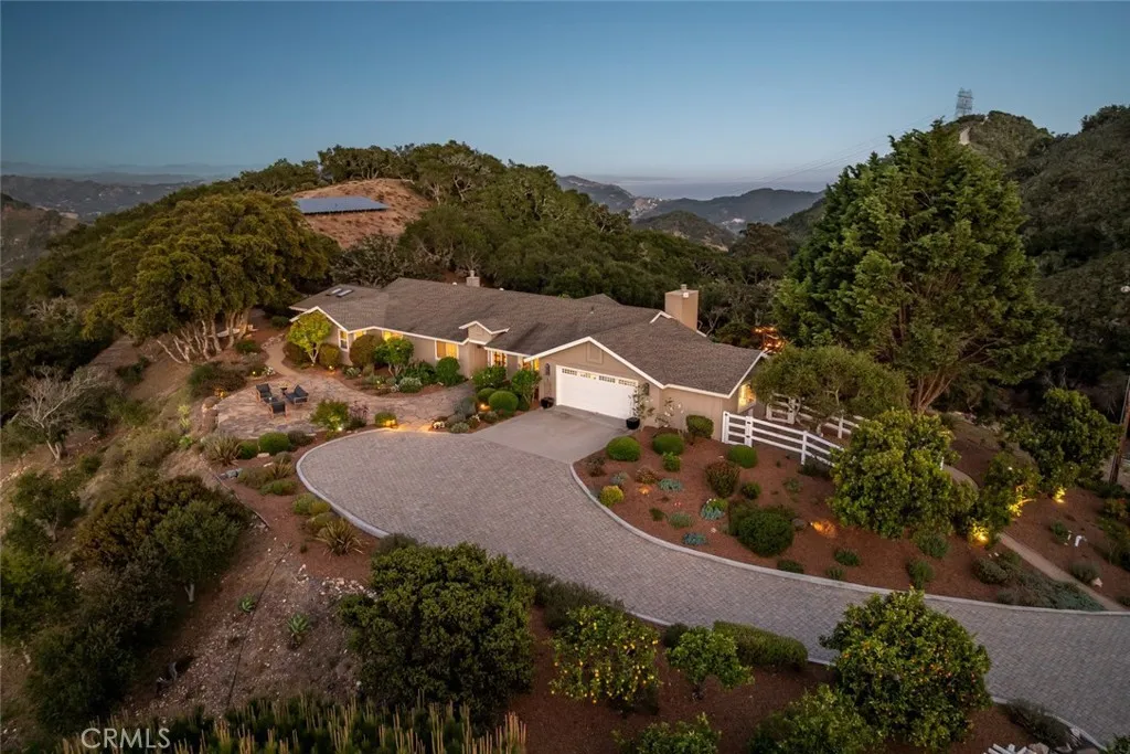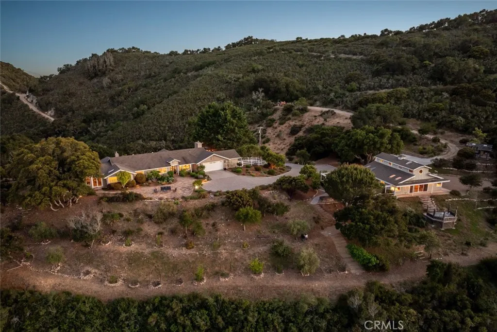Welcome to your private retreat in the sought-after See Canyon region of San Luis Obispo. Perched atop a scenic hillside, this exquisite single-level estate offers stunning panoramic views of the hills and Pacific Ocean. Designed for seamless indoor-outdoor living, the home blends timeless charm with modern comforts, perfect for those who cherish serenity, space, and natural beauty. Vaulted ceilings and large windows create an open, airy atmosphere in the great room, where hillside and ocean views surround a wood-burning fireplace. The gourmet kitchen features a center island, marble and butcher-block countertops, a farmhouse sink, Fisher-Paykel dish drawers, Sub-Zero refrigerator, Viking range, wine storage, and a breakfast nook with built-in seating. The luxurious primary suite boasts vaulted tongue-and-groove ceilings, a sitting area with a freestanding stove, king-size sleeping nook, a large walk-through closet, and a bathroom with a jetted tub, dual vanities, and travertine tile steam shower. Two spacious guest bedrooms with hillside views and built-ins share a hallway bathroom with a clawfoot tub and custom vanity. Exceptional craftsmanship is evident throughout with wide-plank oak floors, skylights, recessed lighting, and a tasteful blend of classic and contemporary finishes. A detached guest house offers vaulted ceilings, skylights, abundant natural light, a kitchen with concrete countertops and high-end appliances, two bedrooms or flex spaces, a bathroom, loft, and built-in office setups; with a separate entrance for privacy. The outdoor oasis features an expansive