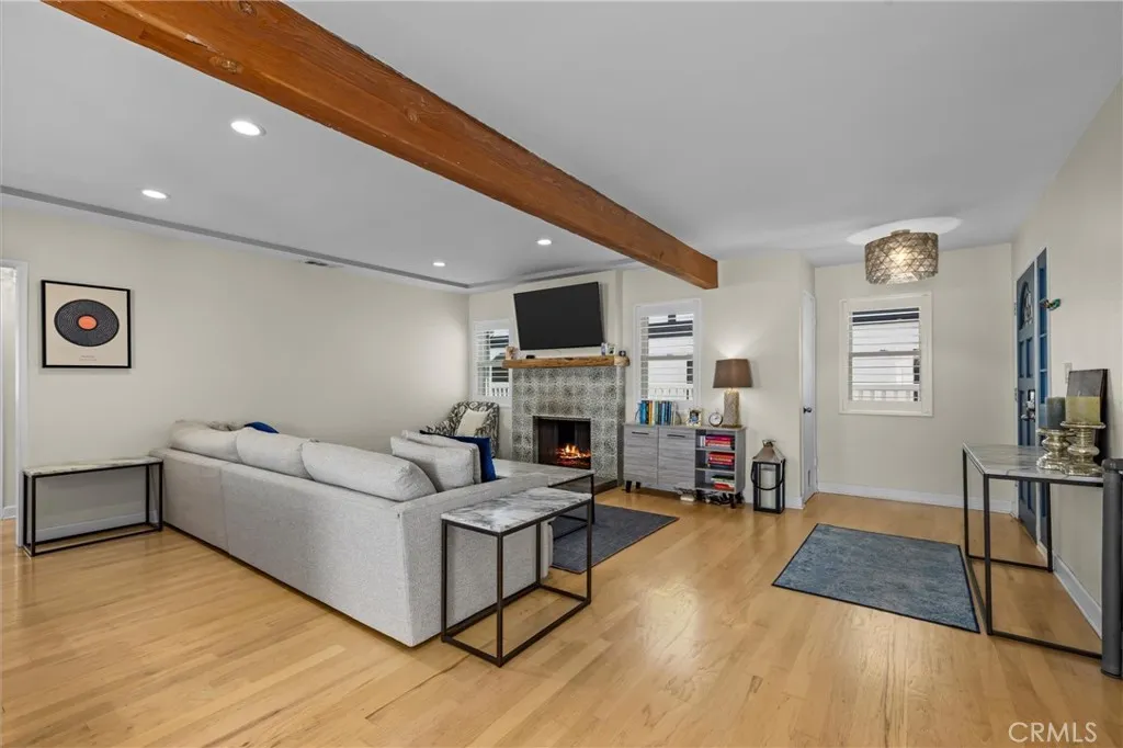 Coastal charm meets modern comfort in this light-filled 3 bed, 2.5 bath home nestled in the heart of the Tree Section of Manhattan Beach. Thoughtfully designed for both everyday living and relaxed entertaining, this home welcomes you with an airy living room featuring vaulted wood-beamed ceilings, rich hardwood floors, and a cozy wood burning fireplace, perfect for cool coastal evenings. The open-concept kitchen is a showstopper, bathed in natural light and accented by marble countertops, bar seating, a farmhouse sink, stainless steel appliances, a wine fridge, and a bold teal tile backsplash. A side door offers easy access to the private backyard, seamlessly connecting indoor and outdoor living. To the right, two generously sized bedrooms share a beautifully renovated full bathroom. To the left, youll find a convenient powder room, a dedicated laundry area with hookups, and the spacious primary suite. French doors open to the side patio, while the spa-like en-suite features a dual sink vanity, stylish tile flooring, and ample closet space. The backyard is an entertainers dream, complete with a custom putting green and room for al fresco dining or weekend BBQs. The home also includes an oversized 2-car garage, offering plenty of storage and space for beach gear, bikes, or a home gym setup. Located moments from award-winning schools, downtown shops and restaurants, and world-class surf, this home offers the best of beachside living.