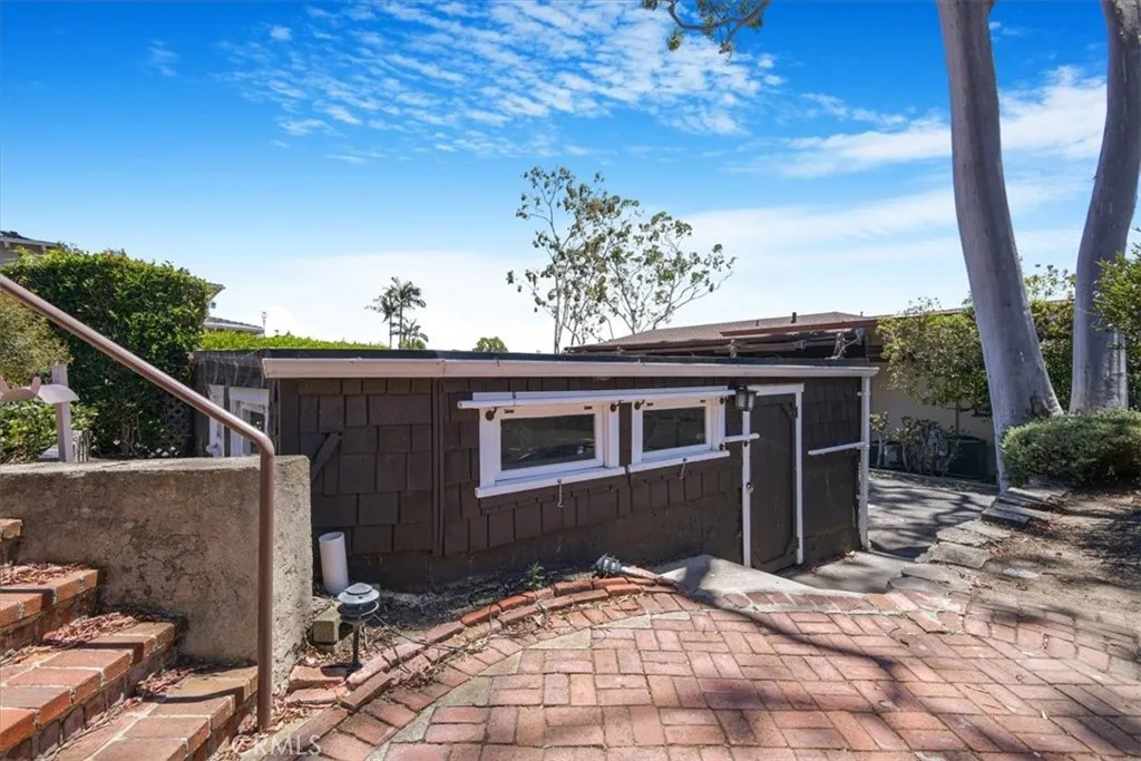 A Timeless Historic, 1913 Hideaway with Ocean Views - AMAZING LOCATION! Short walk to town and beach! Perched on an expansive 5,000 square-foot lot with lush landscaping, mature trees, and brick patios, this residence speaks of enduring care and integrity, from its solid wood floors to its hand-hewn beams and signature brick fireplace. Step through sunlit rooms filled with original windows that draw in the blue ocean like a canvas. The 1,000 sq ft main floor features spectacular sit-down ocean views from all the windows, and a warm and welcoming 1-bedroom, 1-bath suite with a walk-in shower. A finished attic complete with an electronic, finely crafted wood staircase, features a large ocean view picture window, vintage wood paneling, a quarter bath, closets, and storageperfect as a 2nd bedroom for a small person, an artist retreat, office, or playroom. This space is not included in the sq ft., and is approx 700 sq ft. Put in a spiral staircase, or even a tube elevator! The large finished lower level (the size of the main level) includes a half bath, (Easily room for tub/shower) laundry area, and an abundance of storage. An ideal space for a studio, office, gym, theatre, or private guest suite. An enclosed original porch enhances the sense of intimacy and character throughout. A detached two-car garage and newer HVAC system bring modern ease without sacrificing charm. A side gate allows for easy access to the alleyway (and possible future parking ability). This is a fabulous opportunity to live the Downtown Laguna Beach Lifestyle! Be a part of Laguna's renowned history. Let's