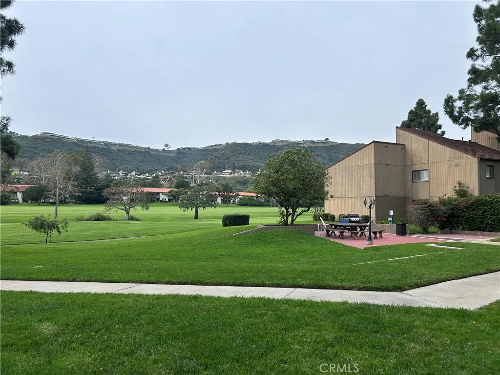 This lower-level end unit condo offers stunning views of the 2nd and 3rd holes of El Niguel Golf Course, with tranquil vistas of the green, fairway activity, and the surrounding valley and hills. Featuring three spacious bedrooms and two baths, the home boasts an open-concept family room that flows into a large patio area complete with a refreshment barperfect for relaxing or entertaining. The kitchen showcases oak cabinets with granite countertops, stainless steel appliances including a stove, microwave, and dishwasher, and recessed lighting. Bathrooms feature tiled showers and baths, while the living areas are finished with tile flooring and the bedrooms are carpeted. French interior doors add a touch of elegance throughout. Central air conditioning ensures year-round comfort, and a stackable washer and dryer are included, though their condition is unknown and no warranty is provided. A two car garage is conveniently located nearby, and the community offers beautifully manicured grounds, a pool, BBQs, and picnic tables just steps from the unit. Residents also have the option to join the El Niguel Country Club, Golf Club, Tennis Club, and Swim Club. Located close to beaches, parks, schools, shopping, restaurants, and major freeways, this condo combines peaceful golf course living with everyday convenience. Having been a rental property for several years, the unit presents an excellent opportunity for updates, including fresh paint and new flooring, to restore its full potential. It is being sold in its current "as-is" condition.