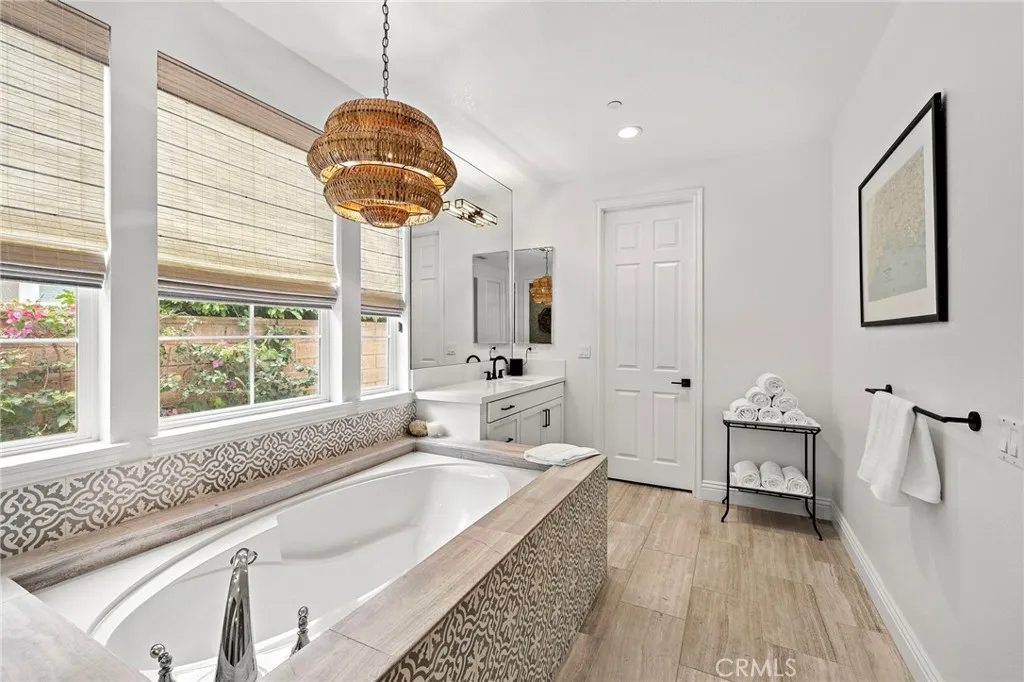 Welcome to the pinnacle of resort-style living in coastal Orange County1 Drackert Lane, Ladera Ranch. Nestled at the end of a cul-de-sac in the exclusive 24-hour guard-gated community of Covenant Hills, this rare single-story, 2,751 square foot home sits on a spacious 9,790 square foot lot and was professionally redesigned in 2022 by Lauren Elder Interiors of Nashville. The open-concept floor plan offers three oversized bedroom suites (optional fourth), an office, and 3.5 bathrooms, a soaring 20-foot ceiling entrance with designer wall coverings and light fixtures, and custom white oak and shaker cabinetry throughout. The stunning kitchen and family room open to a showpiece interior wood-paneled fireplace wall and multiple French doors leading to a fully gated entertainers dream yard distinctively created by J.Armstrong Landscape Design featuring European pavers, a 14x18 louvered pergola with fans and lighting, Sonos surround sound with 12 satellites, 2 in-ground subwoofers, a 1500-watt amp, custom BBQ island with white oak cabinetry and wine fridge, TigerTurf lawn, mature olive trees, a wood-burning fireplace, and beautiful sunset views. Additional upgrades include a garage mini-split system (AC/heat), tankless water heater, PEX repipe, LVT flooring, epoxy garage floors, Vivint security system wiring, designer lighting by Currey & Co., Visual Comfort, and Circa, custom window treatments, wallpaper, barn door, remodeled laundry room with matching appliances, and updated baths. Located near Oso Grande Elementary, community clubhouse, pool, waterpark, skatepark, and trails. H