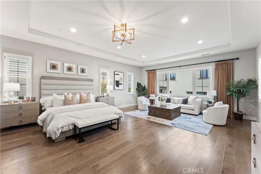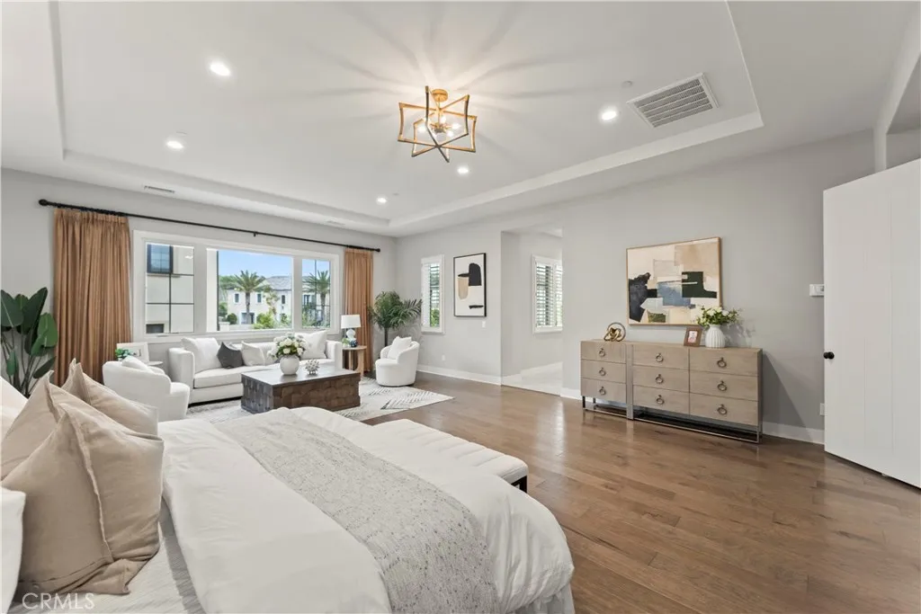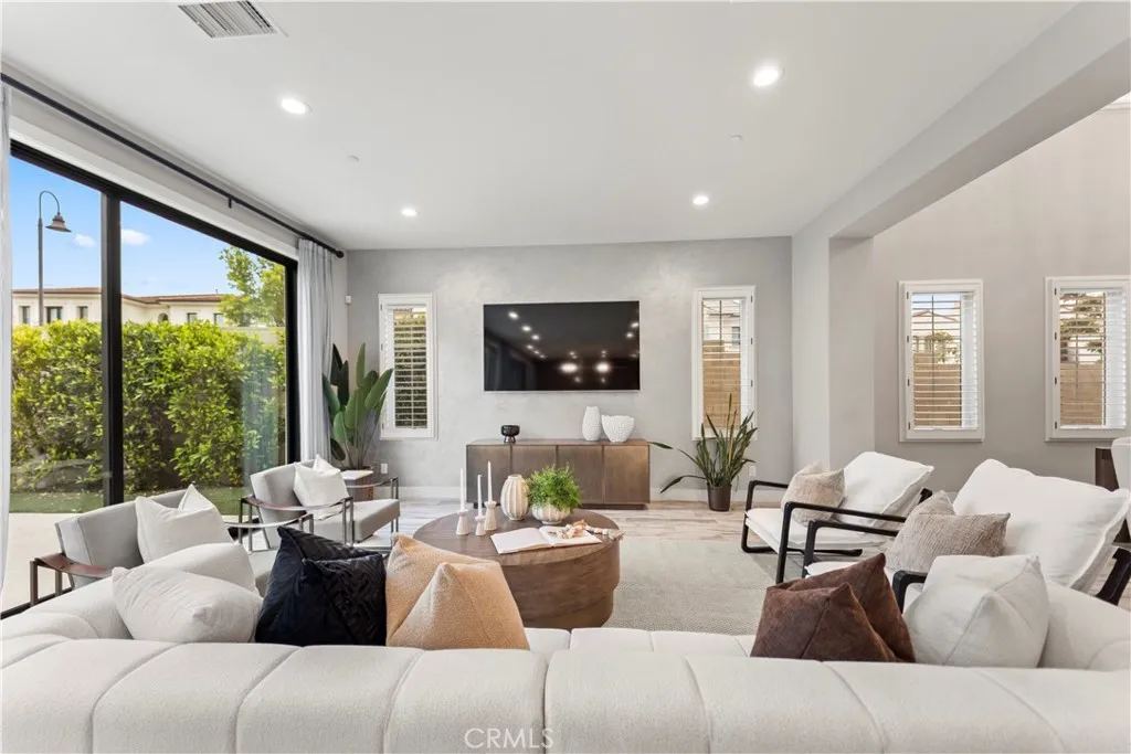 The highly sought-after Solano Collection by Toll Brothers located in the prestigious 24-hour guard-gated community of Altair. Nestled on a premium corner lot, this home features 5 spacious bedrooms, 5.5 bathrooms, and soaring 20ft ceilings in the great room, complemented by a 24" multi-panel stacking door that seamlessly blends indoor and outdoor living. Designed to model-home standards, the property boasts tile flooring throughout the hall, living room, dining room, and kitchen, with elegant wood flooring in all bedrooms, the loft, and on staircases. The gourmet kitchen is outfitted with top-of-the-line WOLF appliances, a built-in 60-inch SUB-ZERO refrigerator, upgraded cabinetry, a premium sink, and Caesarstone countertops and island. A 15-inch multi-panel stacking door enhances the kitchens open layout. The second-floor loft offers versatile space for various uses, while the luxurious master suite features coffered ceilings, a spacious walk-in closet, and a serene retreat. The master bathroom includes dual vanities, a large shower with a seating area, and a soaking tub for ultimate relaxation. Resort-style amenities within the community include a private clubhouse, multiple swimming pools, tennis courts, outdoor fireplaces, and BBQ areas. The home is conveniently located near shopping, dining, parks, sports fields, and award-winning Irvine Unified schools while having easy access to major destinations like the Great Park, Irvine Spectrum, Fashion Island, John Wayne Airport, and highways 405, 5, 133, and 241.