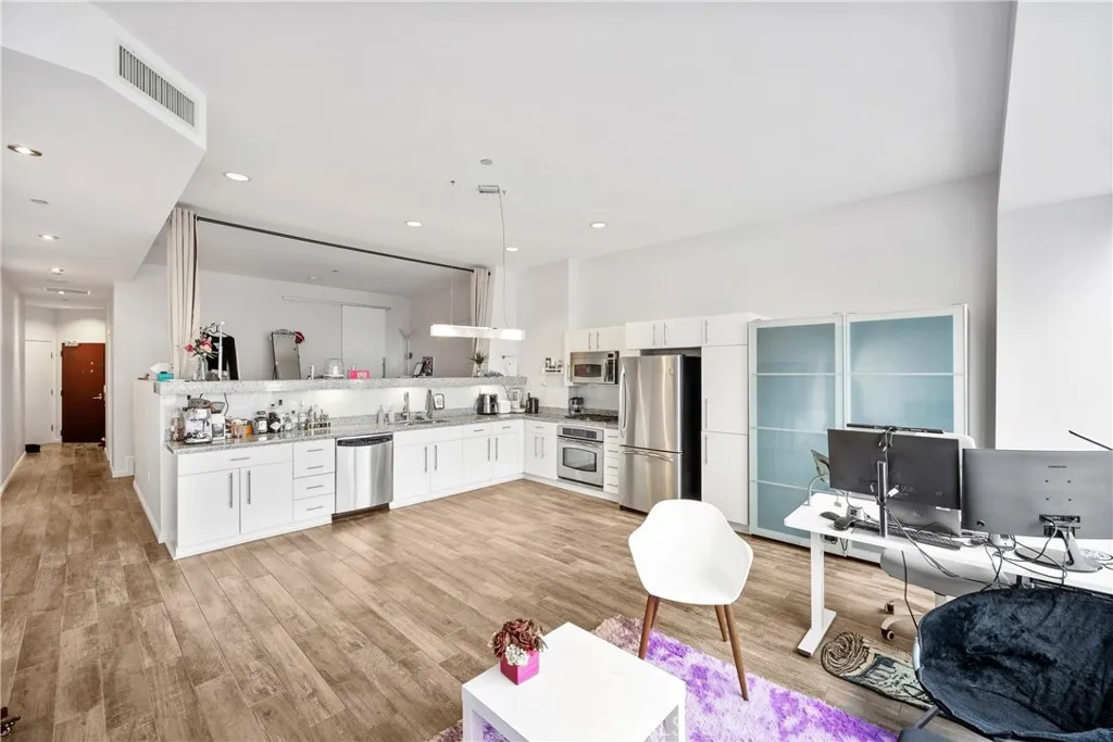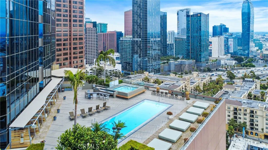 Not quite ready to move in? Even better! Heres your opportunity to OWN a PRESTIGIOUS piece of real estate along LAs iconic WILSHIRE BOULEVARD and KEEP it leased out until youre ready to make it home. Situated high on the 26th FLOOR, this PEACEFUL west-facing loft offers BREATHTAKING SUNSET VIEWS, capturing the glowing golden hour light through expansive wall-to-wall windows. The 800 sq ft layout is thoughtfully designed with an OPEN-CONCEPT living and dining area, allowing for versatile furnishing arrangements and a spacious feel. The ELEVATED PLATFORM BEDROOM includes two closets, plush carpeting, a wraparound ledge perfect for displaying art or dcor, and UNOBSTRUCTED CITY VIEWS. The KITCHEN features granite countertops, stainless steel appliances, plentiful cabinet space, and recessed lightingideal for both daily living and entertaining. This CHARMING BATHROOM offers a nostalgic coastal vibe with sailor blue and navy tile accents. Enjoy a relaxing soak in the deep tub, a separate walk-in shower, an oversized vanity, and generous storage throughout. At 1100 WILSHIRE, you don't need to leave your building to enjoy LUXURY AMENITIES; on the 17th-floor ?SKYDECK, including a HEATED INFINITY POOL, SPA, CABANAS, LOUNGE BEDS, WET BAR, multiple BBQ area and a FIRE PITall designed for RELAXATION and ENTERTAINMENT. Stay fit in the fully equipped GYM with flat-screen TVs or unwind in the PRIVATE MOVIE THEATRE. A BUSINESS CENTER, GUEST PARKING, 24-HOUR CONCIERGE, and controlled access add to the convenience and SECURITY. Located just steps from the Financial District, LA Live, 7th & Fi