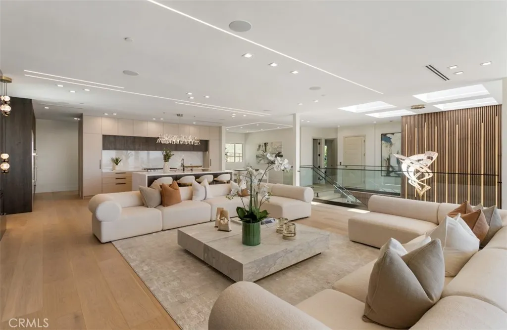 Perched at the end of a quiet cul-de-sac within the exclusive guard-gated enclave of Harbor Ridge, 4 Narbonne is a stunning showcase of design, function, and luxury. Completely reimagined, this architectural gem blends striking modern aesthetics with a warm, inviting ambianceperfectly tailored for entertaining and everyday living. Beyond a private entry gate and custom oversized front door, youre welcomed into a dramatic open-concept layout filled with natural light, curated finishes, and an effortless indoor-outdoor flow. The main level offers three spacious bedrooms, including a junior primary suite with ocean views, and two secondary bedrooms that overlook a serene water feature. A sleek lounge with a fireplace, bar, and media wall adds to the homes entertainer appeal. Take the elevator upstairs, where panoramic views span the Pacific Ocean, Catalina Island, Newport Harbor, and city lights that stretch to downtown LA. Designed for both grandeur and comfort, this level features two additional bedroomsone currently used as a home office with its own balconyas well as a show-stopping primary suite wrapped in floor-to-ceiling glass. The spa-like bathroom and boutique-style closet complete the experience. The heart of the home includes both a front-facing designer kitchen and a full secondary prep kitchen, flanked by a breakfast nook, formal dining area, double fireplaces, and walls of sliding and bi-folding doors that dissolve the line between indoors and out. Step into your own private resort: a spectacular outdoor oasis with a pool, spa, dry sauna, multiple waterfalls, a B