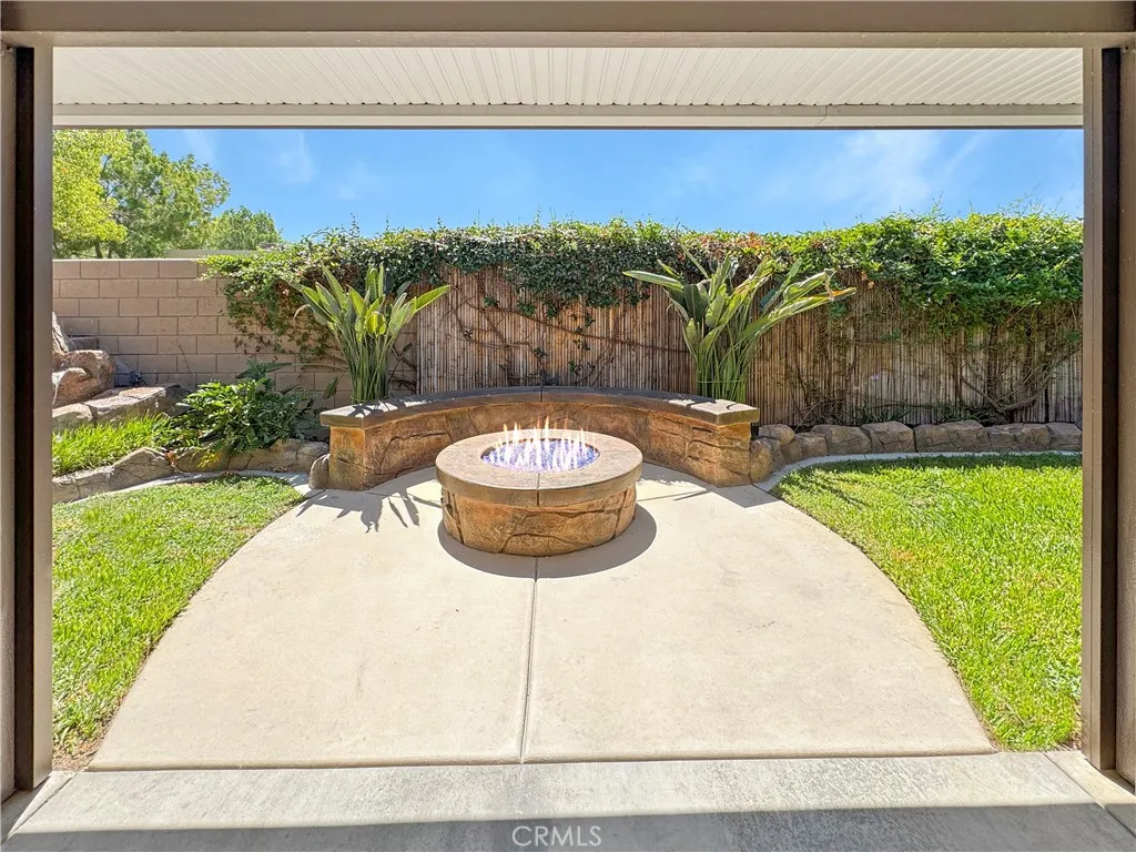 Step into your own private resort with this entertainers dream home, where every detail has been designed to elevate your lifestyle. Imagine sun-drenched afternoons spent around the shimmering Pebble Tec saltwater pool and spa, the soothing sound of a rock waterfall in the background, cool decking under your feet, and friends gathered around the built-in BBQ and bar while an outdoor gas fireplace flickers into the evening. Privacy and beauty surround you with custom stamped and etched concrete, a secure storage area for pool equipment, and a welcoming front courtyard that sets the tone the moment you arrive. The massive driveway provides endless vehicle storage possibilities, including room to park your RV or boat. Inside, light pours through tinted windows onto plush new carpet and luxurious laminate wood floors. The remodeled gourmet kitchen is as stunning as it is functional, with sleek European cabinetry featuring soft-close drawers and pull-outs, LED lighting above and below, granite countertops, a full custom backsplash, and upgraded black stainless Samsung appliancesincluding double oven, refrigerator, microwave, dishwasher, and a gleaming stainless farmhouse sink. In the heart of the home, the family room beckons with crown molding, shiplap wall, wood shutters, built-in desk, cozy fireplace, and an included 75-inch TV. Throw open the French doors and the indoors flow seamlessly to the expansive patio and pool beyond. Solar panels for both the home and pool, a whole-house fan, newer A/C condenser, and tinted windows keep comfort high and costs low. A massive primary