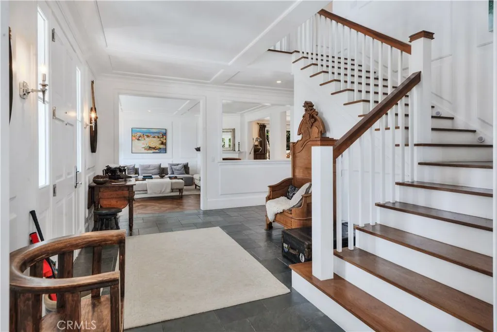 Designed in the spirit of the iconic Shutters on the Beach Hotel, this impressive Resort Point residence sits on a sprawling corner lot with unobstructed ocean views. Soaring 9-foot ceilings and oversized rooms create a remarkable sense of volume, while slate and IPE wood floors, paneled walls, and French doors with integrated shutters add timeless charm. A gracious entry opens to the stunning living room with fireplace on one side and the kitchen with adjacent great room on the other. Anchored by a dramatic 10-foot L-shaped island, the kitchen features marble counters, stainless appliances, and sweeping ocean vistas. The entry level also includes an office, a large formal dining room, and a private guest suite with full bath. The massive family room with wet bar, wine closet, fireplace, and soaring ceilings leads to an amazing 12-seat theater making movie nights and sporting events unforgettable. Upstairs, five spacious bedrooms include a tremendous primary suite with breathtaking views. The outdoors is an entertainers paradise. The expansive, hedge-lined front lawn features a fire pit thats perfect for sunset gatherings, while the private backyard is highlighted by a 50-foot lap pool with spa and Baja shelf, a multi-sport court (pickleball, paddle tennis, volleyball, basketball), an outdoor kitchen with Hestan BBQ as well as a TV to keep the grill chef happy! The 600-square-foot loggia has built-in heaters, fireplace, and a big screen TV that ensures year-round enjoyment. Additional amenities include a Lutron lighting system with programmable scenes, security with cameras