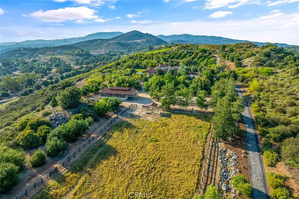 Welcome to HARMONY RANCH A SANCTUARYAND CROWN JEWEL OF THE SANTA ROSA PLATEAU! Masterpieces with these amenities are not only unique in this marketplace, but only rarely come to market. To build this exquisite estate again would require years in the creative process, lengthy custom construction, expansive usable land with panoramic views, and would cost millions over this asking price! Lived in very gently since its inception, it is available now to the most discriminating buyers. THIS IS A LIFESTYLE!From the moment you enter the security gate, the ambiance of 28+ private acres envelopes you, leading you on a peaceful journey past mature landscaping, equestrian pastures, a custom expandable 4-stall barn, half bath, chicken coop with AC & lighted arena to the exquisite 5-BD single-story Mediterranean home, flanked by mature olive trees and adorned with an authentic courtyard with Spanish-tiled fireplace, fountain & covered seating. Drive further to find a charming vineyard, prolific & diverse orchard & second access gate. Step inside the luxurious estate to find upscale details throughout, including high-end flooring, quality custom windows & doors, top-of-the-line appliances, Taj Majal Quartzite counters, designer fixtures, beamed ceilings, recently installed wifi indoor/outdoor sound system, wifi thermostats & security, 2 primary suites each with exterior access and one with a fireplace, soaking tub with view, steam shower & additional outdoor half bathroom/shower. The 2 garages with fresh epoxy flooring provide room for 5 cars, plus workspaces. Entertain in the stylish