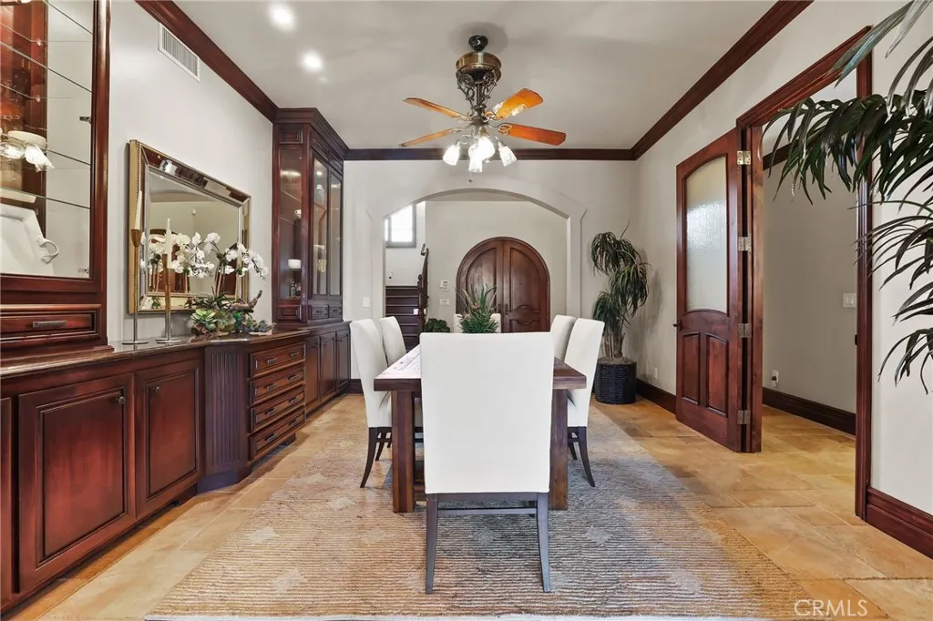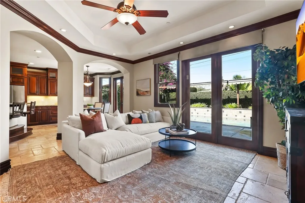 Mediterranean Craftsmanship and Modern Comfort with 60 foot lap lane pool. This one-of-a-kind custom Rossmoor estate offers exceptional construction quality, thoughtful design, and a lifestyle highly sought after in the neighborhood. With approximately 5000 sqft of usable space including 4,247 sq. ft. of living space plus a hidden finished attic space over the 766 sq. ft. garage. This home delivers flexibility, privacy, and functional luxury. The layout includes 4 large ensuite bedrooms, a ground-level guest suite with steam shower, and an impressive office/library with vaulted ceilings and natural lightcomplete with a concealed bonus room ideal for a gym, studio, or storage. An elevator connects each level of the home for easy travel up and down. The chefs kitchen, built with premium cherry cabinetry, granite counters, dual refrigerator/freezers, double convection ovens, steam oven, and a generous island with prep sink. The adjacent living area includes a wet bar and converts into a home theater with a 100-inch screen for effortless entertaining. The primary suite features a spa-style bath, triple-head shower, jetted tub, dual dressing areas, and a private balcony. Additional features include solid wood doors and moldings, high-quality windows, and refined finishes throughout. Outside, the 60-foot saltwater lap pool, oversized spa, and resort-style yard create a true retreat. A 3-car garage plus additional storage area completes this exceptional property. A rare opportunity for the buyer who values craftsmanship, privacy, and a highly functional luxury home in Rossmoor.