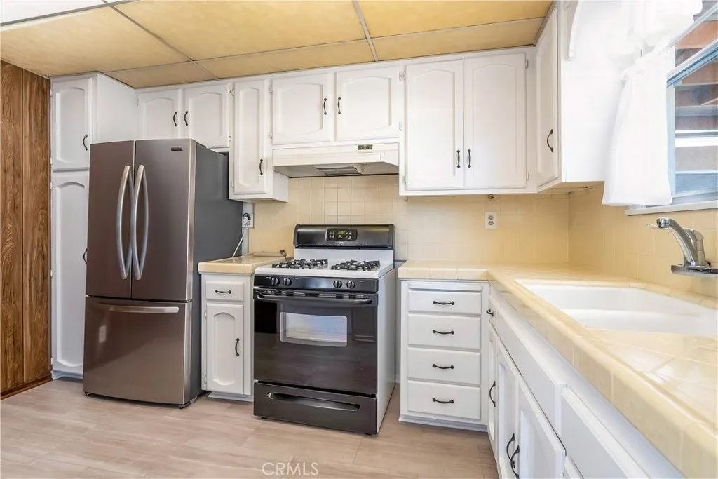 Charming Move-In Ready Home in Panorama City! This well maintained single-family home offering the perfect blend of comfort, functionality, and location. This 3-bedroom, 2-bathroom residence spans 1,227 sq. ft. of living space on a 5,871 sq. ft. lot, making it ideal for both families and first-time buyers. Step inside and youll find an inviting layout featuring laminate in kitchen and carpet flooring throughout, fresh paint, and double-pane windows that fill the home with natural light. The spacious living room seamlessly flows into the kitchen, where youll enjoy tile countertops, ample cabinetry, and included appliances such as a refrigerator, dishwasher, gas oven, gas range, and microwaveeverything you need to cook and entertain with ease. All bedrooms and bathrooms are conveniently located on the main floor, perfect for family, guests, or a home office. The bathrooms have been updated with modern touches, creating a fresh and welcoming feel. Outside, enjoy a large backyard with a covered patio and deck, offering endless opportunities for entertaining, gardening, or simply relaxing. The property also includes a brick fence, storage structure, and attached single-car garage with driveway parking for additional convenience. Additional highlights include: Laundry room inside for everyday ease, Smoke detectors installed for peace of mind, Neighborhood views from this desirable location, Situated on a quiet street with sidewalks, curbs, and streetlights. Centrally located near schools, parks, shops, dining, and with quick access to Roscoe Blvd. and Van Nuys Blvd., this home pl