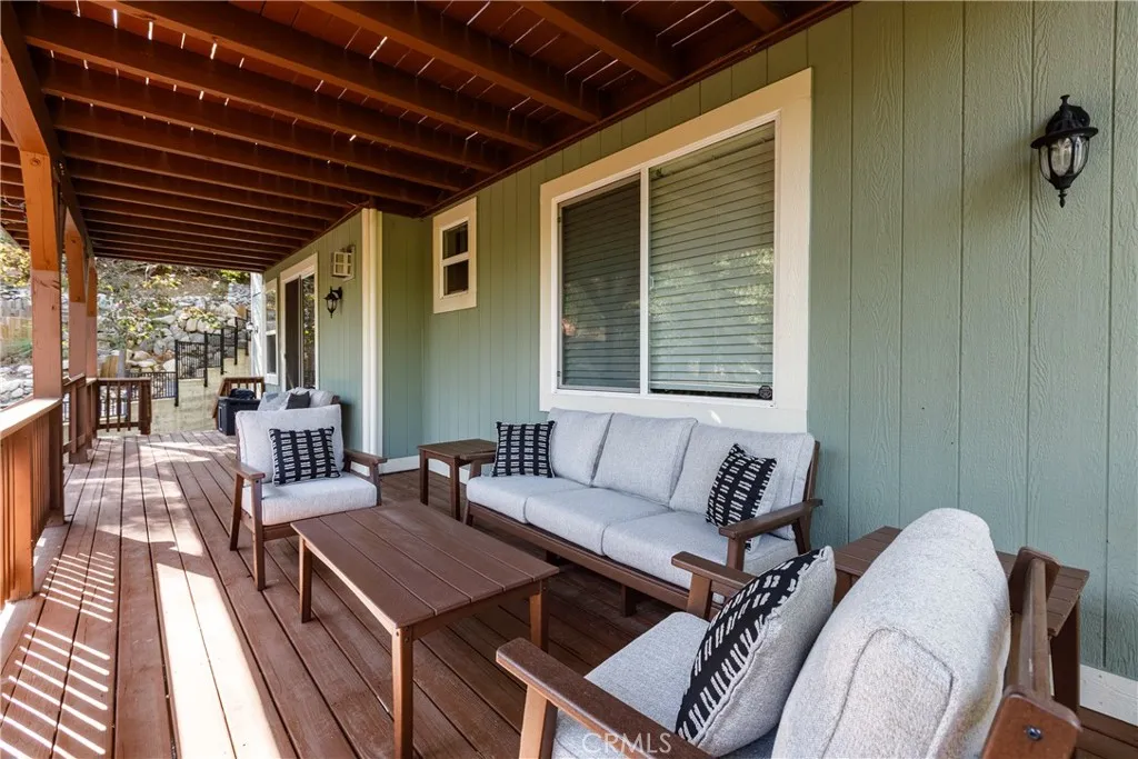 Experience mountain living at its best with this immaculate, turnkey Lake Arrowhead home, now available on its own, with an exceptional opportunity to purchase a newer single-slip dock, dock house, and 2023 South Bay pontoon boat for an additional cost. The home features level entry with direct garage access and a bright, open living room showcasing soaring ceilings, a stone fireplace, and a dramatic wall of glass that opens to the deckperfect for sunset dining and relaxed mountain living. The gourmet kitchen is designed for the home chef, offering a pantry, coffee nook, and seamless flow into the dining area, ideal for gatherings, holidays, and entertaining. The main-level primary suite serves as a true retreat, complete with its own fireplace, jetted tub, walk-in shower, and generous closet. The lower level expands the living space with a cozy family/game room featuring a fireplace and sauna, three spacious bedrooms, two bathrooms, and an oversized laundry room. Outdoor living is thoughtfully designed with multiple destinations, including a serene relaxation deck, firepit lounge area, and a dedicated entertainers deck with endless potential. The property has been fully winterized and weatherized, including added concrete pedestals for A/C and generator systems. All decking has been refurbished and re-stained with a premium 10-year finish for lasting durability and visual appeal. Available separately for an additional cost, the lake package elevates the lifestyle even further and includes a newer single-slip dock with hydro-hoist, a beautifully designed 2024 dock house fea