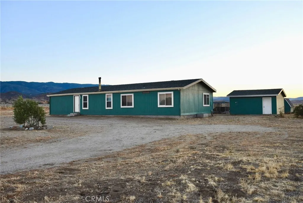 This move-in ready spacious four-bedroom residence sits on 2+ acres in a peaceful and scenic rural area of Antelope Valley, north of Santa Clarita, northwest of Lancaster. The entrance driveway is off of a nicely paved and maintained county road off Hwy 138, with close access to I-5. An ideal home for young couples or families looking for plenty of space and options to add dream-home additions. The completely usable flat acreage is perfect for horses, chickens, goats, patios/decks, or grove of pecan trees or lavender. Existing outdoor water system supports livestock, orchard, or landscaping. Secure your vehicles, watercraft, RV, animals, and children in the yard by way of the existing fencing and lockable entry gate. The manufactured home sits on a permanent seismic foundation. Premium dual-glazed Milgard windows, window cladding trim, French doors, and rain gutters reflect premium upgrades. The exterior house and two-car garage are freshly painted. Garage sits on a concrete foundation with a new garage door, full electrical, and side entry door. Inside, a front entrance foyer opens to a freshly painted spacious, high ceiling open plan living, dining, and family room area, with French doors to the backyard. Generous sized kitchen features new planked wood laminate flooring, wood cabinets, large pantry, and attached dedicated laundry room. Large main suite bedroom is situated on one side of the living area, and features new planked wood laminate flooring, freshly painted walls, large walk-in closet, and large private bathroom with new flooring and vanity and walk-in shower/s
