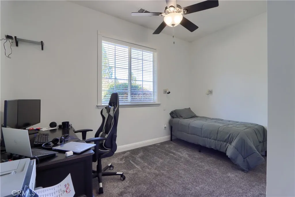 Life in the Sierra foothills offers a special kind of peacetowering pines, clear mountain air, and easy access to some of California's most beautiful outdoor destinations. Located in the desirable Ahwahnee River Creek Estates, this custom 5-bedroom, 4-bath home sits on 1.02 acres along the 6th fairway of River Creek Golf Course, offering scenic views and a quiet setting in a welcoming neighborhood with no HOA fees. Designed with both comfort and character, the 3,050 sq. ft. home centers around a spacious great room with coffered ceilings and a raised-hearth wood-burning fireplace, creating a warm gathering place for family and friends after a day enjoying the mountains, lake, or nearby trails. The primary suite offers its own retreat with a custom built-in propane fireplace. The kitchen is well-appointed with granite countertops, propane cooktop, double ovens, and a casual breakfast nook, while a nearby formal dining room with San Miguel Mission-style columns adds charm and elegance for special occasions. A unique drive-through breezeway separates the main residence from the garage and a private bonus room with full bath and its own HVAC systemperfect for guests, a home office, hobby space, or extended family. Throughout the home you'll find thoughtful details including custom doors, crown molding, and a mix of carpet, tile, laminate wood, and stained concrete flooring. Practical comforts include two HVAC systems, two water heaters, centrally located laundry near the bedrooms, RV parking, underground utilities, generator hookup, gutters, and a sprinkler system for the lands
