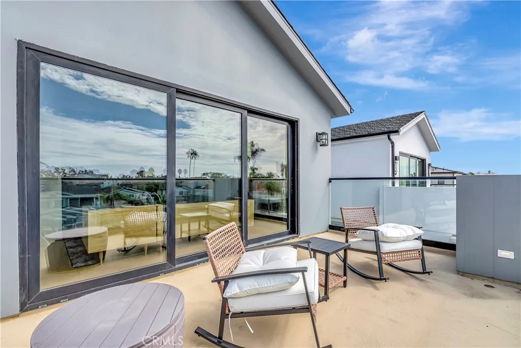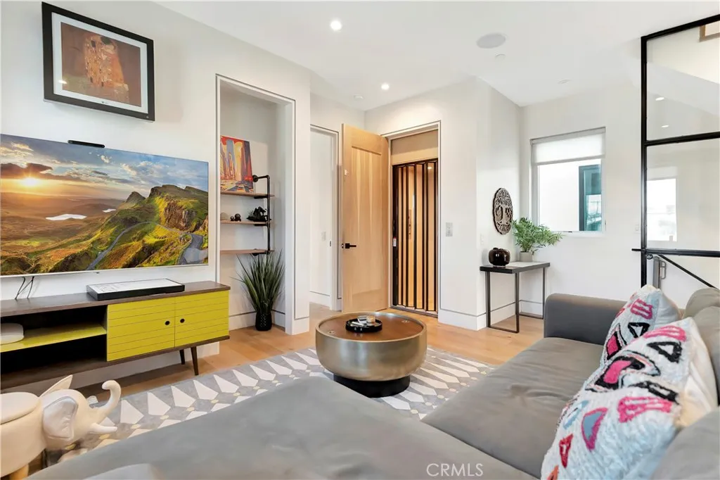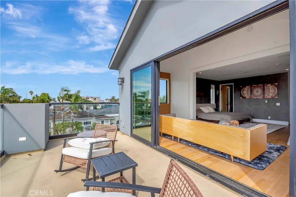 Beautifully designed tri-level beach home, perfectly set on a sunny, oversized corner lot just minutes from the sand and the lively heart of Downtown Huntington Beach. This sophisticated home built in 2021 spans over 3,300 square feet of thoughtfully curated living space and features a private elevator for effortless access to all levels. Bathed in natural light from expansive windows, the open-concept main level exudes warmth and elegance, enhanced by recessed lighting, high ceilings, a sleek cozy fireplace with integrated surround sound and oversized bi-fold patio doors open to an exceptional outdoor sanctuary, creating an ideal setting for indoor/outdoor year-round entertaining. The dining area, featuring a built-in wine display, seamlessly flows into the chefs kitchen, appointed with premium Wolf stainless steel appliances, a spacious walk-in pantry, and a center preparation island with bar seating. The second level offers a versatile media or bonus room (easily converted to 4th bedroom), alongside two large bedrooms, including a primary suite designed for ultimate retreat living. The 3rd level features a second primary suite with a dedicated seating area with a built-in desk, a spa-inspired bath with dual vanities, soaking tub, walk-in shower, and a custom-designed walk-in closet. Each additional bedroom offers generous proportions and refined finishes. As well as a office perfect for a lounge, home office, or 5th bedroom, with an attached half bath, with direct access to expansive rooftop decks that elevate the indoor-outdoor experience. The 2 car garage is fully fini