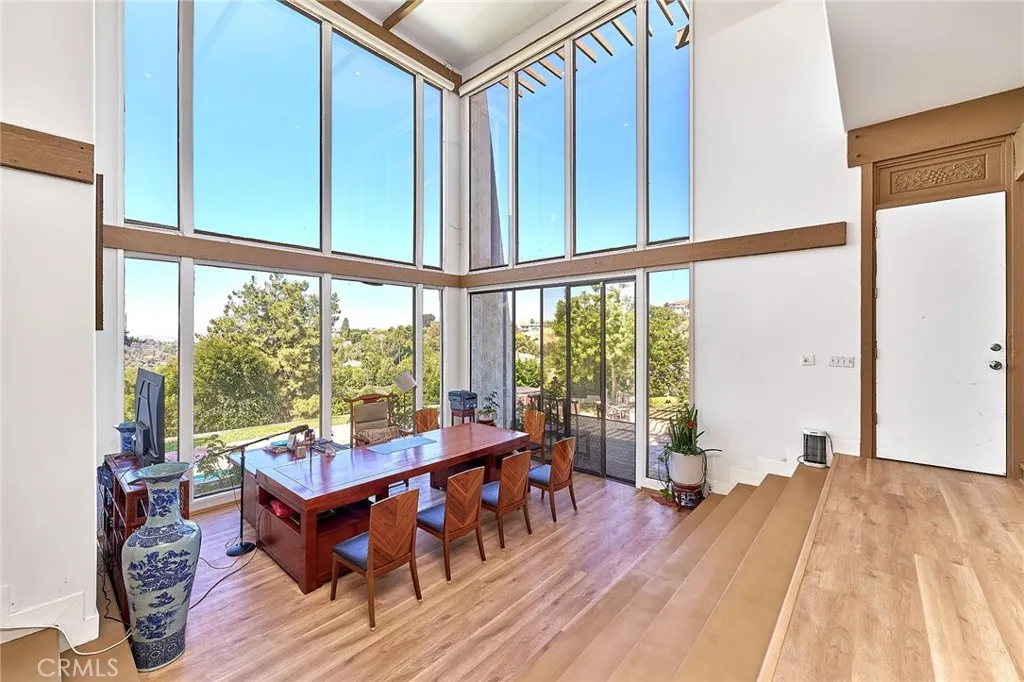 The best is that the purchase of this building comes with a bonus of over 3,700 square feet, including a 1,000-square-foot permitted ADU. The oversized 7-car garage and large living room could even be used as a clubhouse. This timeless 5,306-square-foot residence, nestled in the prestigious Country Estates community, blends historic charm with refined luxury. Originally a grand library, the residence retains its architectural splendor, with soaring ceilings and expansive windows bathing the interior in natural light while offering sweeping views of the surrounding landscape. This is the only hilltop property in the Country Estates community where both buildings are situated on flat land. Situated on nearly 1.5 acres, the property offers ample space, privacy, and a resort-style lifestyle. The main house boasts 5 bedrooms and 4.5 bathrooms, with a thoughtfully designed layout, including a first-floor master suite, perfect for entertaining family, friends, or guests. A chef's kitchen with a separate prep kitchen is perfect for entertaining, while a private wine cellar enhances the residence's refined charm. Outdoors, a beautiful pool provides the perfect spot for relaxation and gatherings under the open sky. This extraordinary estate, boasting iconic architecture, modern amenities, and spaces for living, working, and entertaining, is a rare find in one of the area's most sought-after communities.