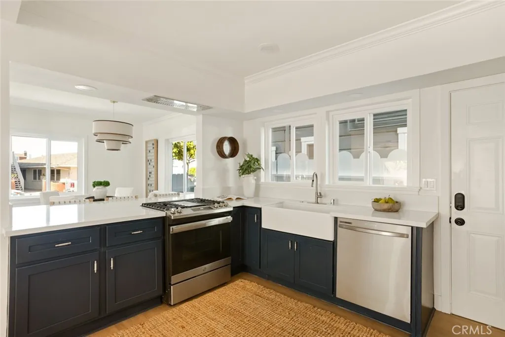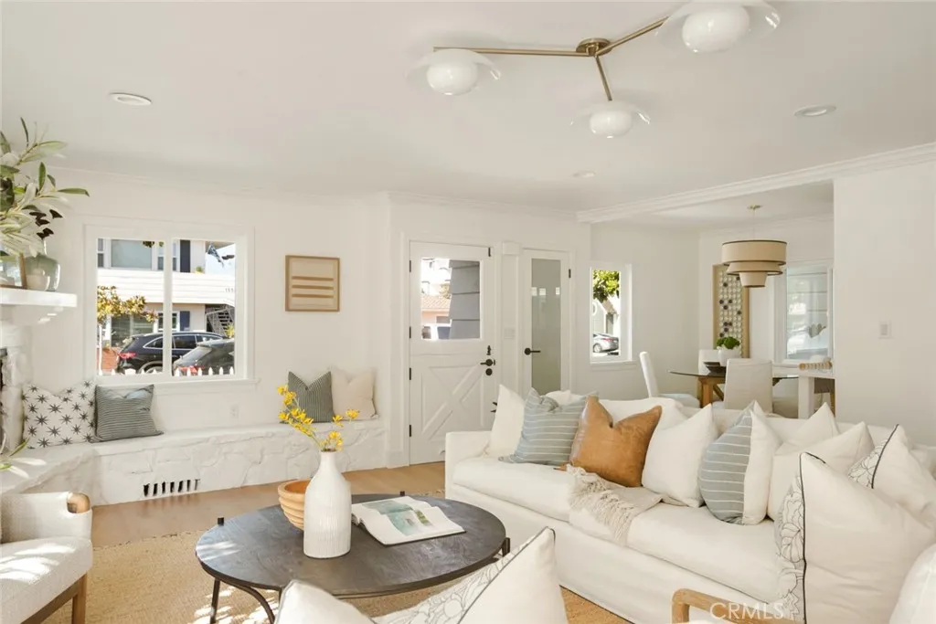 Nestled in the heart of Newport Beachs coveted Balboa Peninsula, just two blocks from beaches along the Pacific Ocean and nearly as close to Newport Bay, this upgraded home with rare 35 foot wide lot is destined to enhance your lifestyle. Stroll to fashionable cafs, restaurants, shops and galleries, or relax at home on your inviting front patio, complete with a classic white picket fence. Beyond the Dutch entry door, a reimagined first level reveals open-concept style with a seamless dining room, living room and kitchen. A custom mantlepiece and white stone hearth grace a corner fireplace, while the new kitchen opens to the dining room with a passthrough bar and hosts Shaker cabinetry, stainless appliances, quartz countertops and a door to the side yard. Elegant craftsmanship is revealed through the inclusion of crown molding, wide white oak-inspired luxury vinyl plank flooring, designer lighting fixtures and custom wall treatments. Approximately 2,630 square feet, the four-bedroom, three-bath residence continues indoor/outdoor living on the second level, where a private deck is accessed by a versatile den, the primary suite and a secondary bedroom with separate entrance, making it perfect for guests. A spiral staircase leads from the main deck to a sunny rooftop deck with panoramic city-light views, and both decks are finished with slotted wood flooring. The primary suite showcases a sitting area, wood-finished accent wall, a romantic fireplace with floating hearth, a spacious dressing area with mirrored wardrobes, and a new custom bath with rain shower, freestanding tub a
