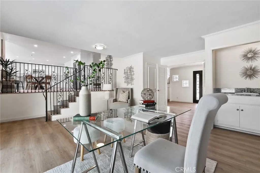 Welcome to this beautifully remodeled home where timeless architecture meets contemporary elegance. Set on a spacious half-acre corner lot, this property not only offers incredible privacy and curb appeal but also presents a fantastic opportunity for an ADU, guest house, or future expansion. Step through the custom wrought-iron double doors into a bright, airy interior featuring wide luxury vinyl plank flooring, designer finishes, and modern railings that enhance the open layout. The split-level design offers multiple living spaces filled with natural light, perfect for both everyday living and entertaining. The chef-inspired kitchen showcases white shaker cabinetry, quartz countertops, stainless-steel appliances, and an expansive island that flows seamlessly into the dining and family areas. Just off the main living area, a dedicated office with sliding glass doors opens to the patio, ideal for working from home. A guest bedroom and full bath downstairs provide comfort and flexibility for visiting family or multi-generational living. Upstairs, the primary suite is a tranquil retreat featuring a spacious layout and a luxurious ensuite bath with dual vanities and a freestanding clawfoot tub. Three additional guest bedrooms and another full bath complete the upper level. The backyard is an entertainers dream, expansive, private, and low-maintenance, with multiple zones for outdoor dining, lounging, and play. Theres also ample parking space for an RV, boat, or additional vehicles, further enhancing the propertys versatility. Located in a serene, desirable neighborhood, this ho