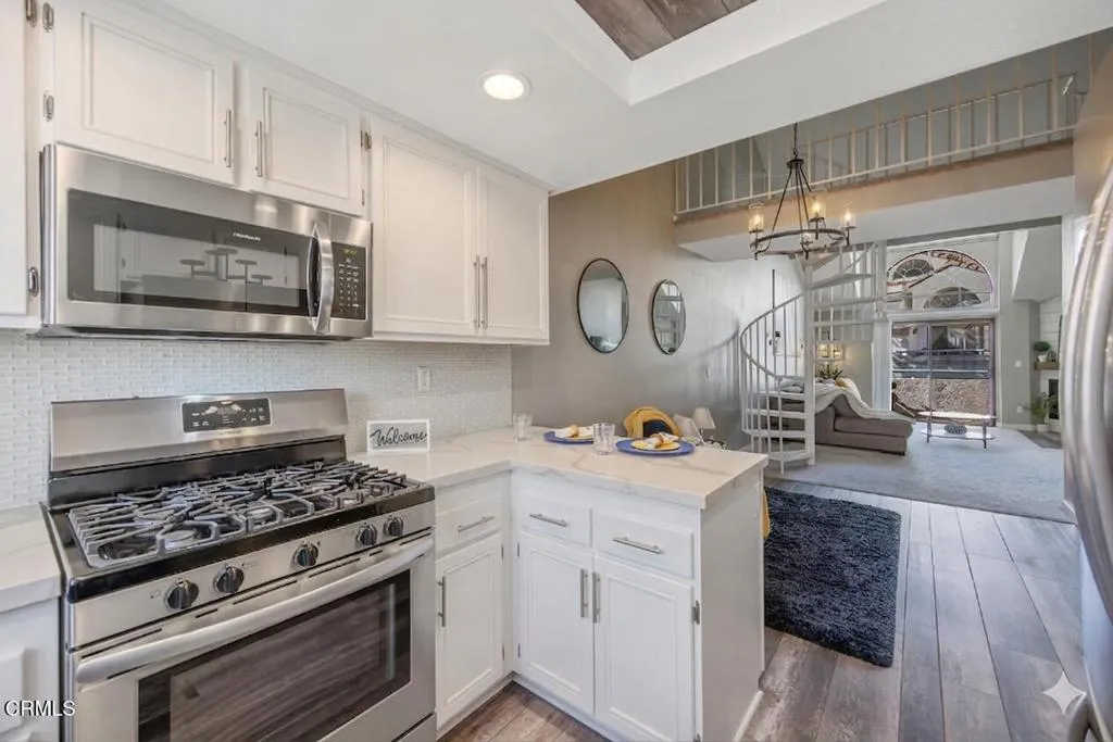 Welcome to this move-in ready 2 bedroom + loft (optional 3rd bedroom) condo in the highly sought-after Princessa Estates in Canyon Country, Santa Clarita. Perfectly positioned for both comfort and convenience, this light-filled home offers an open floor plan with soaring cathedral ceilings and a versatile loft ideal for a home office, guest space, or additional bedroom.The upgraded kitchen is designed for modern living, featuring new countertops, stylish backsplash, recessed lighting, fresh paint, and stainless steel appliances. The inviting living room centers around an updated fireplace, complemented by new flooring, base molding, and contemporary lighting throughout--creating a clean, elevated aesthetic buyers are searching for in today's market.Both bathrooms have been fully renovated with new vanities, updated flooring, and modern fixtures, offering a fresh, turnkey feel. The spacious primary suite features vaulted ceilings for an airy, open atmosphere, while the secondary bedroom includes new closet doors and thoughtful updates.Enjoy seamless indoor-outdoor living with access to lush greenbelts and resort-style community amenities, including two sparkling pools--perfect for enjoying the Southern California lifestyle.Additional highlights include a private tandem 2-car garage with a new garage door, plus in-unit washer, dryer, and all appliances included--making this a true turnkey opportunity for buyers or investors.Located in a prime commuter-friendly location just minutes from the 14 Freeway, this home offers easy access to shopping, dining, and all that Santa Clari