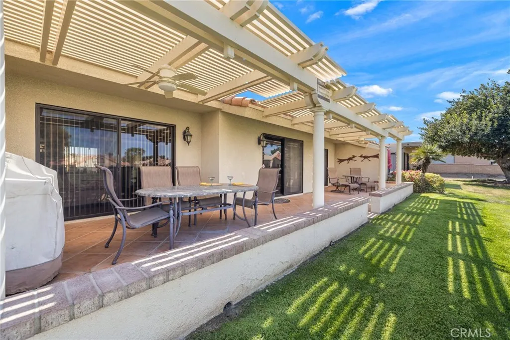 Welcome to 77050 Pauma Valley Way Home of "Tennis in a Pickle", the Largest Pickleball Club in the Coachella Valley! Experience resort-style living with 28 pickleball courts and 7 tennis courts in this vibrant, amenity-rich community. This highly desirable Forest Hills floor plan offers one of the best panoramic views in the neighborhood showcasing breathtaking vistas of the mountains, expansive golf course, and stunning desert skies. Set on coveted Pauma Valley Way, known for its unobstructed views, this home features an extended patio with a pergola the perfect space for dining, relaxing, and entertaining against a dramatic natural backdrop. Inside, enjoy an open and bright layout with: Split master suite design, Spacious open-concept kitchen and living area, Three sliding glass doors bringing in abundant natural light, Walk-in closets, Indoor laundry, and Generous patio space for outdoor living. This property is offered turnkey furnished and includes a 4-seater golf cart ideal for exploring the community's many amenities including 20 pools and spas, clubhouse with bar and dining, championship golf course, bocce ball, and of course, the renowned pickleball club. Palm Desert Resort (PDR) is celebrated for its active and social lifestyle, and short-term rentals are allowed, making this a great option for full-time living, seasonal enjoyment, or investment. Conveniently located near the back gate for easy access to El Paseos fine dining and shopping, Acrisure Arena, Indian Wells Tennis Garden, Polo Grounds, and all that the Coachella Valley has to offer. Don't miss one o
