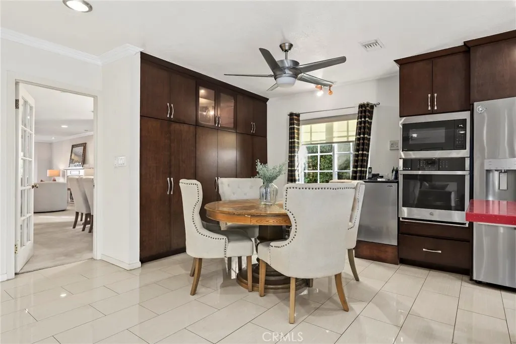 Spacious 6-bedroom home with dual primary suites, paid solar, mountain views, and Arcadia schools! As you enter through the double doors, youll be greeted by a formal entry with high ceilings, a stunning marble foyer with a custom medallion and a very welcoming feeling. The large living room features cozy carpet, fireplace, and recessed lightingperfect for relaxing or entertaining. A formal dining room for hosting large gatherings. Brand new sliding glass doors help keep things quiet and energy efficient. The custom kitchen is a chefs dream, with an eat-in island, dining area, GE appliances, a single oven with microwave above, trash compactor, tile flooring, and plenty of storage. The kitchen sink has its own water filtration system. This home offers real hardwood and carpet flooring, ceiling fans in all rooms, built-in speakers, and a security system with a front yard camera for peace of mind. It also has a paid-off solar system, a tankless water heater, and dual-zoned HVAC...each bedroom has its own temperature control for convenience. There are three bedrooms downstairs, including a primary bedroom with a remodeled Jacuzzi bath. Two more remodeled bathrooms are also on the main floor. Upstairs youll find three additional bedrooms, including a second primary bedroom with another remodeled Jacuzzi bath, and a hall bath. The upstairs primary bedroom also offers a balcony to enjoy the gorgeous view of the mountains. The inside laundry room includes the washer and dryer (watch your step when entering), and the home features an interior fire sprinkler system for added safety.