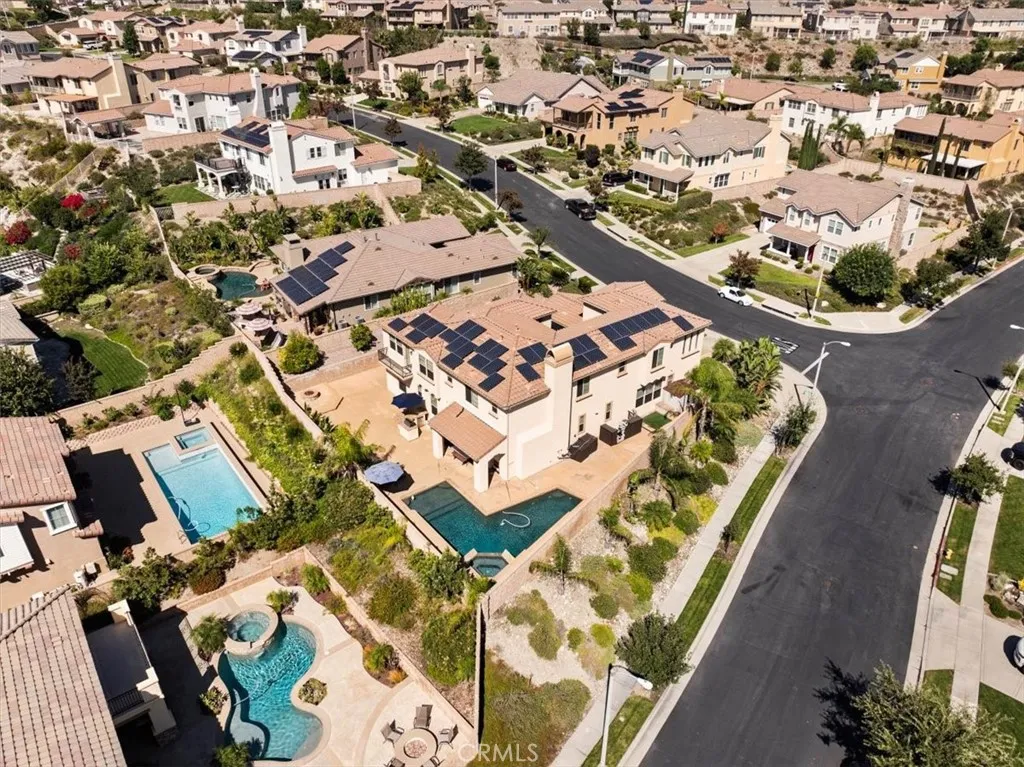 This home has everything you could desire an amazing floor plan, breathtaking city and mountain views, and a beautiful pool and spa. Located in the private, gated community of Rancho Etiwanda Estates, this two-story home features a spacious foyer, guest bath, living room, and formal dining room. The kitchen offers an island with bar seating, a walk-in pantry, and opens to the family room, breakfast nook, and laundry room, which leads into the 3-car tandem garage. The lower level also includes a second staircase to the upper level and a bedroom with its own private bath, ideal for guests or multigenerational living. Upstairs, youll find a loft area perfect for a game room, three additional bedrooms each with their own bath, a workspace, and a luxurious primary suite. The primary suite features a sitting area with a fireplace, access to a private balcony, and a spa-like bath with dual vanities, a makeup counter, separate shower and tub, and two walk-in closets. Additional highlights include a porte-cochere leading to the courtyard, extra driveway parking, professional landscaping, a gas firepit, outdoor BBQ island, covered patio area, an in-ground pool with a baja shelf and pebble-tec finish, and an in-ground spa with a waterfall. Located in an award-winning school district and close to major shopping, dining, and entertainment including Victoria Gardens, Ontario International Airport, and Toyota Arena. Every moment you wait, someone else could take your opportunity.