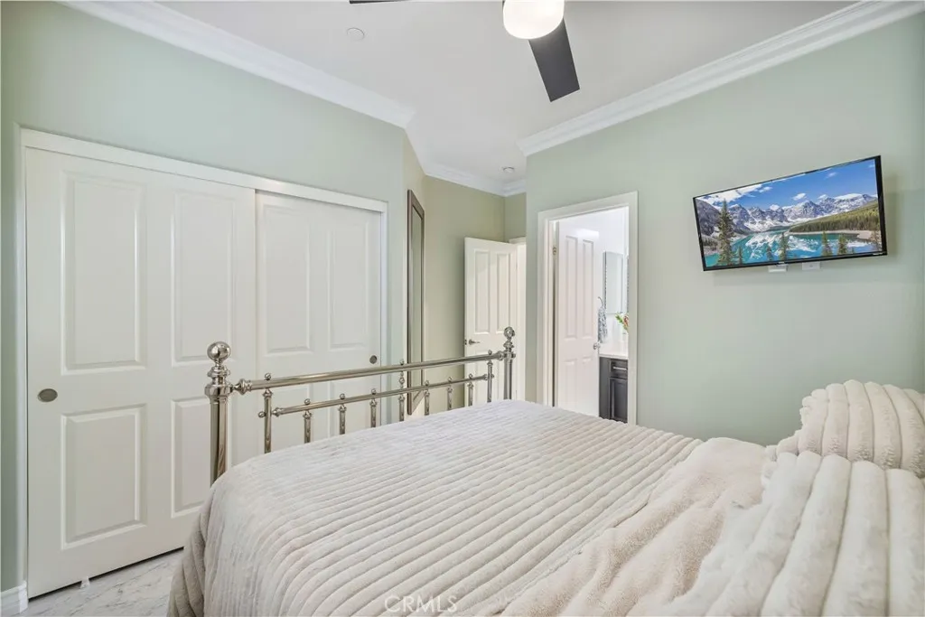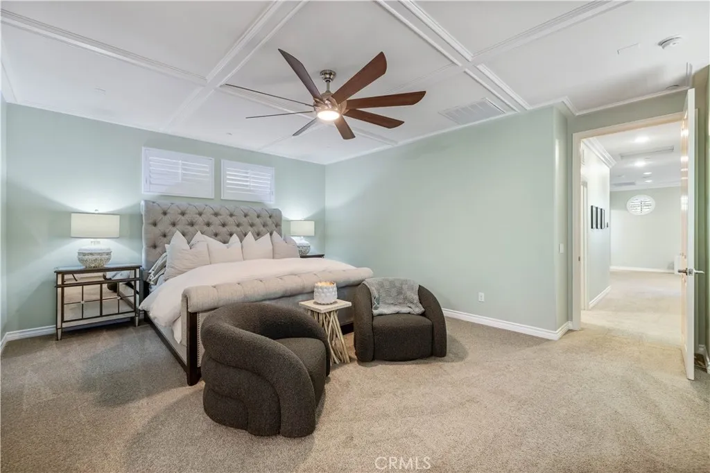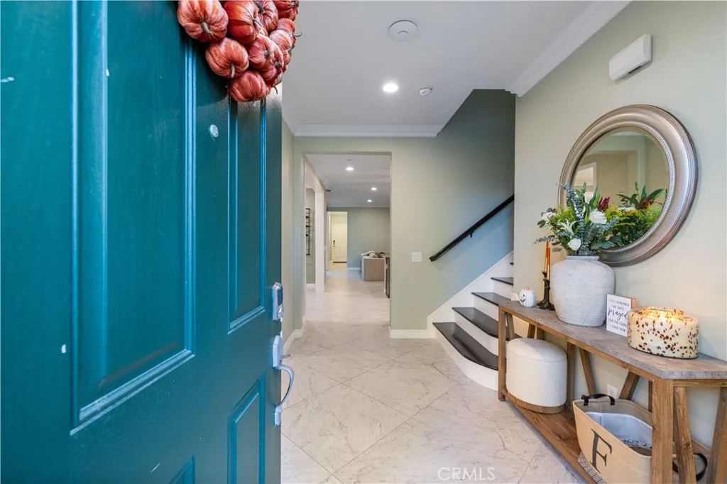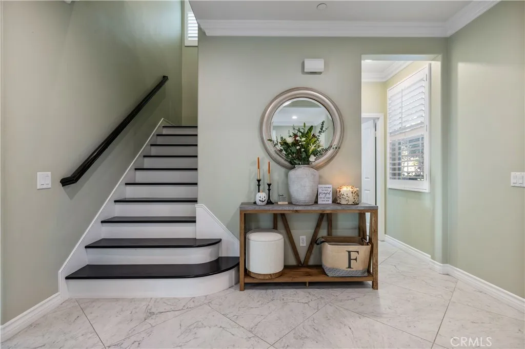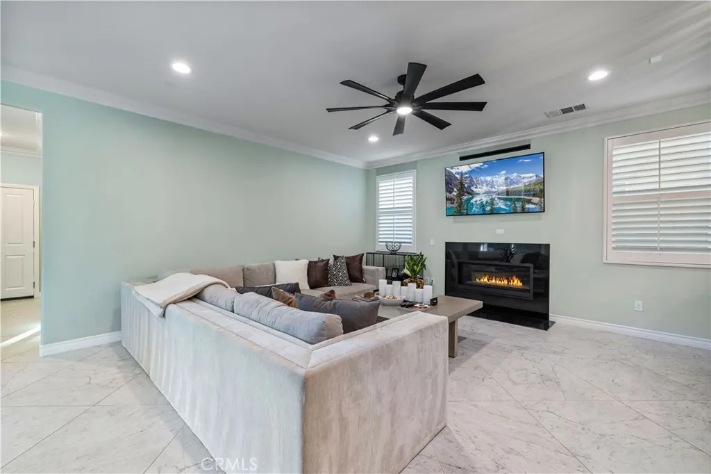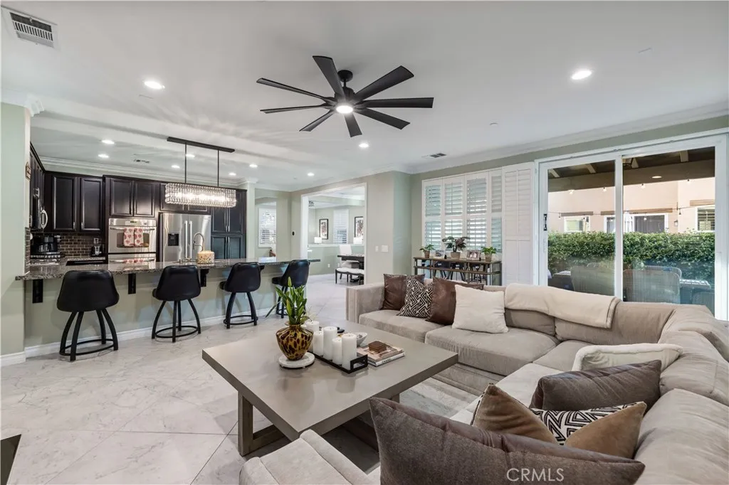 Welcome to your dream home in the highly sought-after West Creek community! This luxurious 4-bedroom, 3.5-bath home offers 2,887 sq. ft. of beautifully designed living space where not a single detail was spared. The open-concept layout features a spacious family room with a marble-faced linear fireplace, a gourmet kitchen with granite countertops, custom backsplash, an oversized island, plus a formal living room and dining area filled with natural light. Downstairs includes a full bedroom and bathroomperfect for guestswhile upstairs offers a large bonus area/loft, three additional bedrooms, and two full bathrooms with dual vanities. The elegant primary suite includes wood ceiling accents, a custom barn door, dual walk-in closets, a soaking tub, walk-in shower, and dual vanities. Additional highlights include modern tile flooring, plantation shutters, crown molding, stainless steel appliances, custom lighting, a tankless water heater, and a paid-for solar system. The laundry area is over sized and includes additional storage area. The exterior is picture-perfect, with meticulously maintained landscaping and excellent curb appeal. The backyard creates a relaxing retreat with a covered patio, recessed lighting, ceiling fan, pavers, and even a lime treeideal for morning coffee or evening wine under the stars. 3 total parking spaces, 2 garage and one uncovered next to the garage with an EV charger. Located near top-rated schools, parks, pools, and shopping, this stunning home truly exudes pride of ownership.