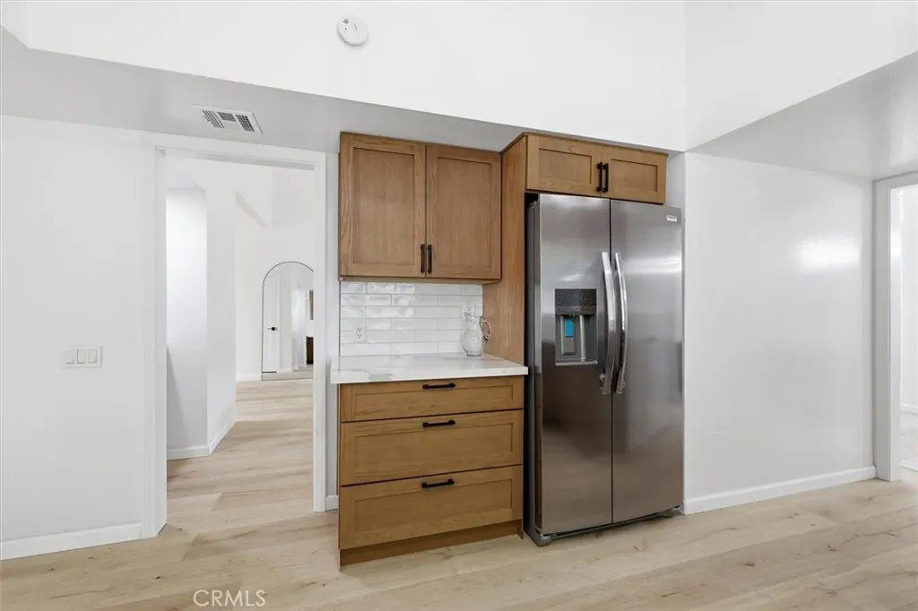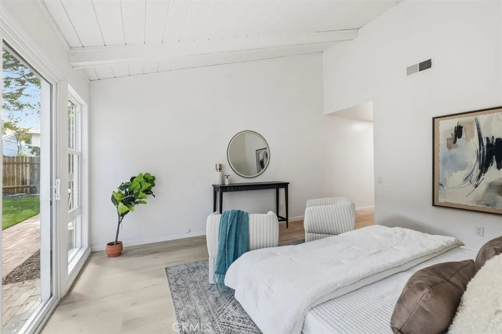 When you arrive at this Pacific Palisades residence, you are welcomed by timeless California architecture, tranquil hillside views, and a family friendly neighborhood. This single-story home blends relaxed coastal living with elegant design, offering three bedrooms and two bathrooms across approximately 2,200 square feet of thoughtfully curated space. Inside, natural light floods the open layout through expansive windows, creating a warm and inviting atmosphere. The main living area centers around a statement fireplace and vaulted ceilings, giving the space a sense of openness and charm. The adjoining dining area flows seamlessly into a spacious kitchen that offers generous cabinetry, ample prep space, and the perfect foundation for a modern culinary upgrade. Whether entertaining guests or enjoying quiet evenings at home, every corner of this residence is designed for comfort and effortless living. Sliding glass doors open to a private backyard sanctuary surrounded by lush landscaping. The outdoor space offers a tranquil setting for entertaining, relaxing, or enjoying the California sunshine. With approximately 6,600 square feet of land, there is room to expand, add a pool, or create an outdoor kitchen and lounge for year-round enjoyment. The primary suite is a serene retreat with direct access to the yard, a spacious walk-in closet, and an ensuite bath ready for a luxurious reimagination. Two additional bedrooms provide versatility for guests, family, or a home office, each designed with ease and functionality in mind. Located just moments from Palisades Village, the beach