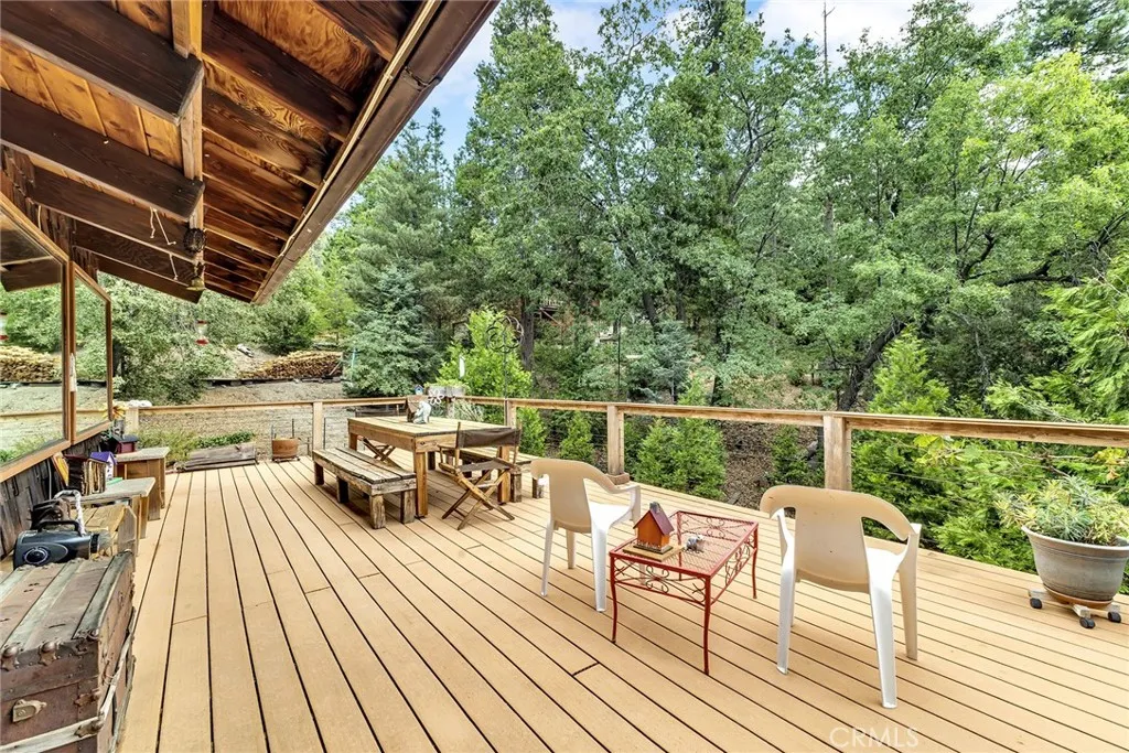 Three homes on three private acres, just five scenic miles north of Idyllwild. Zoned W-2-40, this versatile property offers a rare combination of residential comfort, income potential, and flexible rural use. The setting is quiet and private, surrounded by tall pines and mountain views, with room for horses, gardens, and creative projects. The main residence features vaulted wood-beam ceilings, open living and dining areas, and three bedrooms including two ensuite units. A large quilting room offers abundant light and storage, easily adaptable as an art studio, office, or additional bedroom. The primary suite includes a walk-in closet and a spacious bath with a custom oval window. The lower ensuite bedroom is large enough for a sitting area, gym, or guest suite. Outdoor living spaces include a screened and covered deck for morning coffee and a wraparound deck ideal for sunset views. A 500-square-foot detached workshop provides ample space for tools or hobbies. Above the two-car garage, a bright one-bedroom apartment includes vaulted ceilings, full kitchen, and laundry. The two-bedroom Garden House offers its own fenced yard and forest views. Both guest units are currently rented, generating steady income while the main home remains owner-occupied. The property, known as Eagles Nest Ranch, captures the true mountain lifestylepeaceful, private, and practical. Whether you envision a family compound, small equestrian retreat, or creative live-work environment, this three-acre parcel provides rare versatility and endless potential under W-2 zoning. Trails, wildlife, and open spa