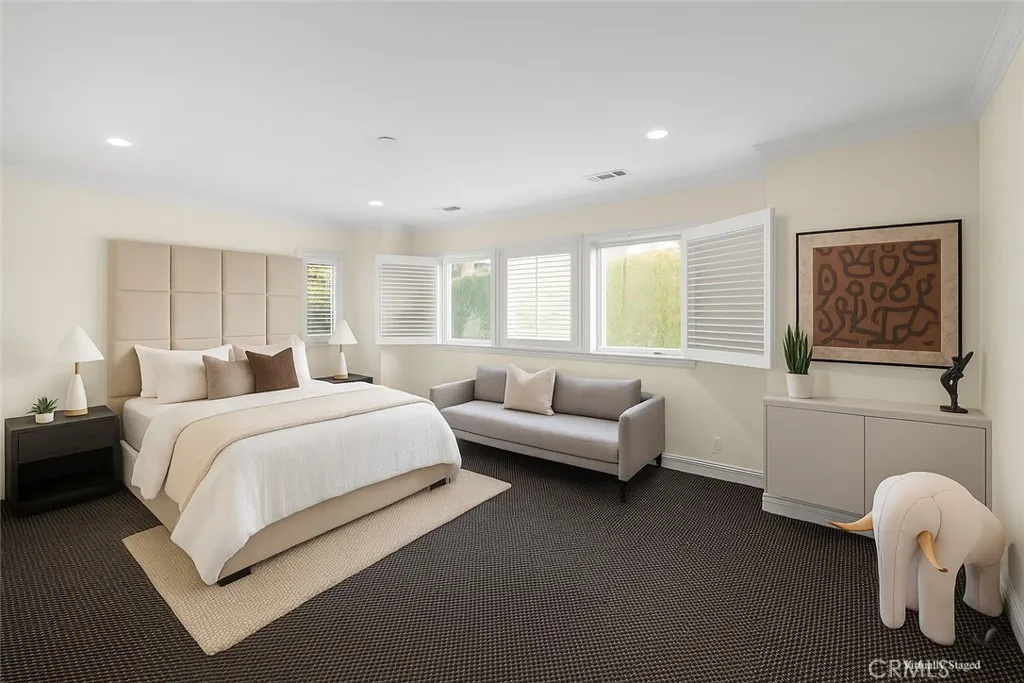 Overlooking the 18th fairway, this home offers unobstructed golf course views and a rare blend of privacy, sophistication, and effortless coastal living in the exclusive guard-gated community of Big Canyon. The expanded floor plan reveals a bright, open-concept layout designed for modern living. The living and dining areas are united by a dual-sided fireplace and walls of glass that open to a spacious back patio finished with patterned brick and a charming gazebo - ideal for outdoor dining. The kitchen is equipped for entertaining with granite countertops, professional-grade appliances including dual ovens, two dishwashers, a six-burner cooktop, Sub-Zero refrigerator, and a walk-in pantry. Designed for comfort, this home features four bedrooms, three with ensuite bathrooms. The main-level suite offers direct patio access and an adjacent private bedroom/office, while dual upstairs suites include one with a private balcony overlooking the fairway, perfect for morning coffee or a quiet sunset retreat. Additional highlights include abundant natural light, recessed lighting, custom closets, and thoughtful storage throughout. Every detail reflects a balance of elegance and livability, making this home an ideal primary residence or luxurious retreat in Newport Beach. Enjoy the coveted Big Canyon lifestyle with 24-hour guard-gated security, scenic golf course surroundings, and an unbeatable location moments from Fashion Island, world-class restaurants, coastal trails, and the areas finest beaches. This is the refined, relaxed, and effortless lifestyle youve been looking for.