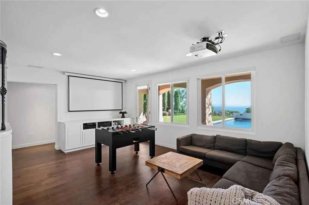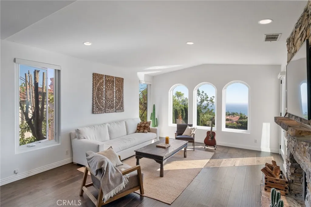 Perched above the Terranea Resort, this exquisite former model home captures breathtaking ocean and Catalina views from nearly every room. A tranquil courtyard and fountain welcome you into a bright, elegant interior where brand new windows and doors frame the stunning coastal panorama. The open living and family rooms extend to an expansive balcony, perfect for enjoying the sea breeze and endless views. The gourmet kitchen is a showpiece, featuring granite countertops, a large island, new stainless steel appliances, and a sunny breakfast area. The formal dining room shines with a coffered ceiling and chandelier, while the living rooms custom stone fireplace and wet bar create a warm, refined ambiance. The main-level primary suite offers a serene retreat with ocean views and a recently renovated spa-inspired bath complete with a tub, separate vanity sinks, and walk-in shower. A stately office opens to the front courtyard, and a stylish powder room completes the upper level. Downstairs includes two bedroom suites, plus two additional bedrooms with a Jack-and-Jill bath, a spacious family room, dedicated laundry room, and wine cellar. Outdoors, enjoy brand new landscaping, a turf backyard, and a sparkling new saltwater poolall set against the gorgeous ocean and Catalina backdrop, perfect for entertaining or relaxing in luxury. Additional highlights include a brand new HVAC system, hardwood floors, wrought iron accents, and Tuscan-inspired finishes that blend timeless elegance with modern comfort. Conveniently close to top-rated PV schools, shops, and the coast.