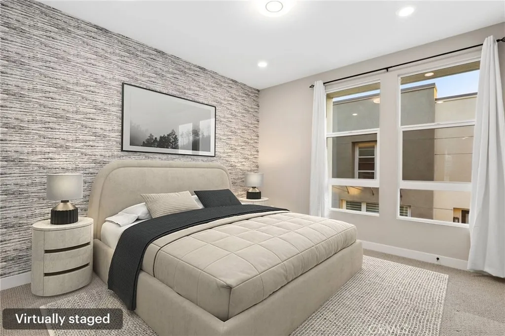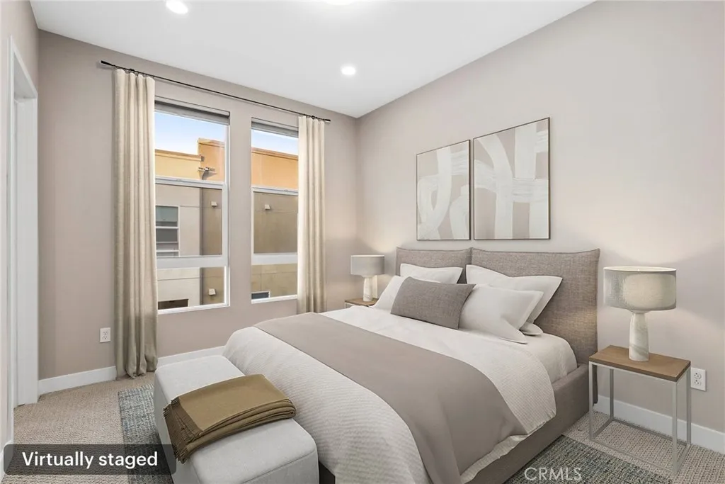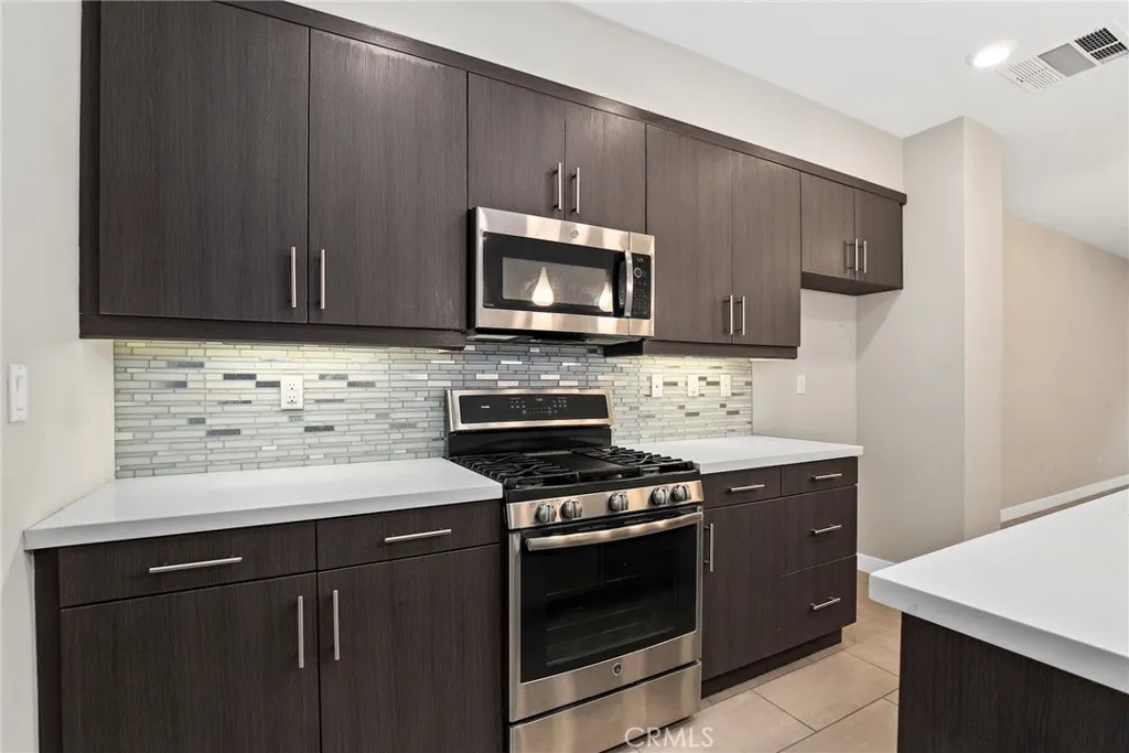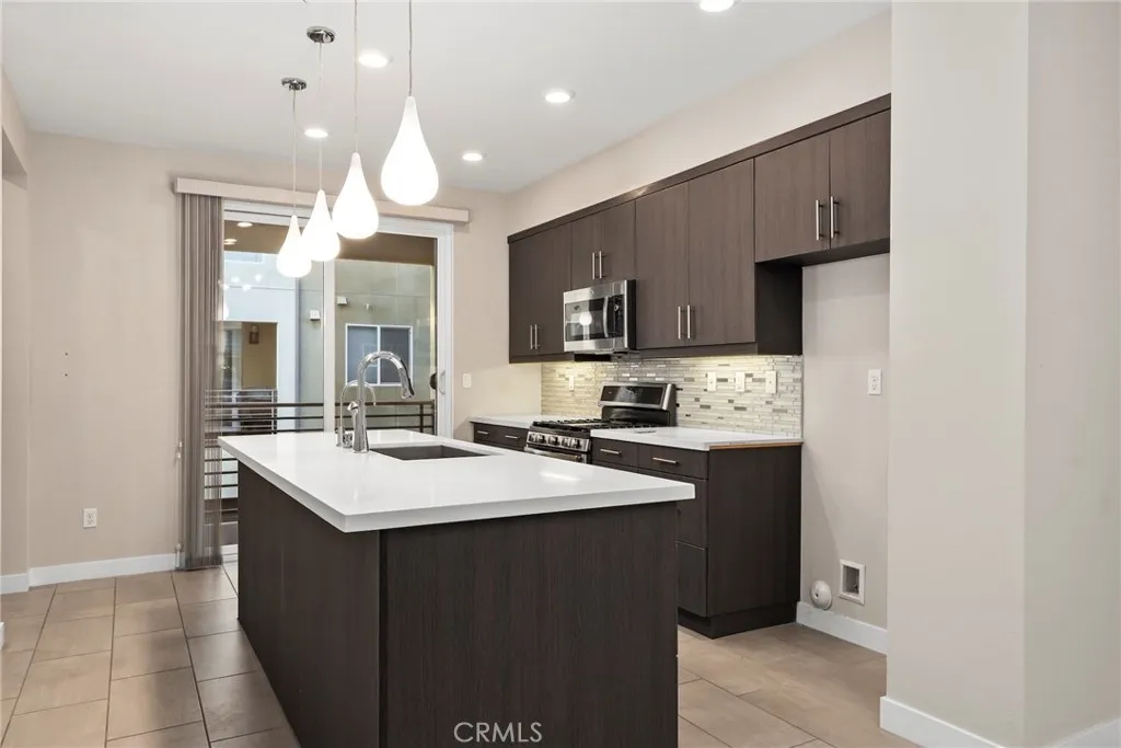 Experience modern comfort and style in this stunning tri-level home featuring 3 bedrooms, each with its own private bathroomincluding a first-floor suite ideal for in-laws or guests. Enjoy energy-efficient mini-split A/C on the first floor, abundant natural light, tile flooring, recessed lighting, and Levolor zebra blinds throughout the main levels. The open-concept kitchen is a showstopper with stainless steel appliances, quartz countertops, sleek contemporary cabinetry with underlighting, a gas stove, built-in microwave, dishwasher, stylish backsplash, storage island, modern pendant lighting, pantry, and sliding doors leading to a covered balconyperfect for relaxing or entertaining. Upstairs, the primary bedroom impresses with ample closet space and an elegant en suite boasting a dual-sink vanity, water closet, custom tilework, and glass-enclosed shower. A second upper-level bedroom provides comfort and privacy with its own en suite and spacious closet. Additional highlights include an attached 2-car garage with motion lights and a 220V 14/50 EV charger, guest parking inside the gated community, top-floor laundry, tankless water heater, whole-house water softener, 7-stage reverse osmosis filtration system, humidity-sensor exhaust fans, enhanced sound insulation, premium Moen and Kohler fixtures, and custom built-ins.