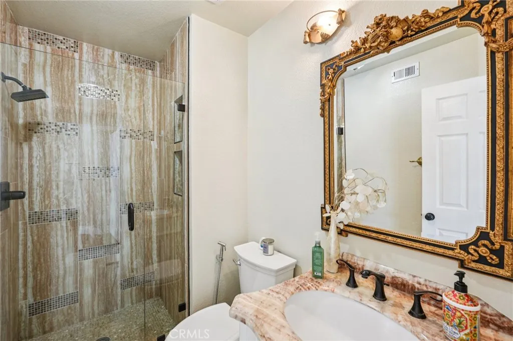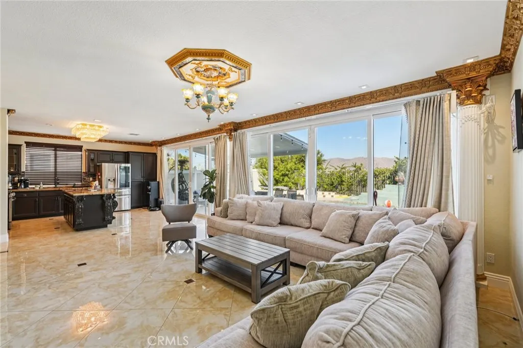 Resort Like Living, Luxury Home, With A View, On A Cul-De-Sac. please Note: The Home has a total of 5 Bedrooms - First Floor has 2 Bedrooms, both are used as a Bedrooms, one of them has no closet, its considered a flex room / office because it has no closet (currently used as a bedroom). This Gorgeous Home featurs an open floorpan with a view, featuring a wall-to-wall sliding doors, bringing the outdoor beauty to blend with the interior Luxury, with custom drapes that are remote controlled; The Home features thoughtfully finished high-end bathrooms and an open concept kitchen, high cathedral ceilings in the formal living/dining & the master bedroom, All compelemented by luxury chandeliers, and Custom mirrors in the formal dining room and bathrooms, in addetion to ceiling fans/mini-shandliers in the bedrooms, that contributes to a sense of refined comfort and sophistication. The Spacious open floorplan Home features a downstairs Room, and a full bathroom. This exceptional Luxury Pool Home, reflects the artistry of a creative interior designer, and the vision of a Tasteful Owner, that has spared no expense in upgrading both the interior and exterior of the home, ensuring a distinct character. This Unique Property Has Just gone under a Backyard/Pool Renovation, The Pool has been replastered with a modern look pibbles finish. The low maintnace backyard is designed as a resort-like oasis. The three car garage also, has been upgraded, with an A/C unit, finished walls, and epoxy flooring. This Home Also, features: A New Large Solar System with an EV car charge port ; This Home is