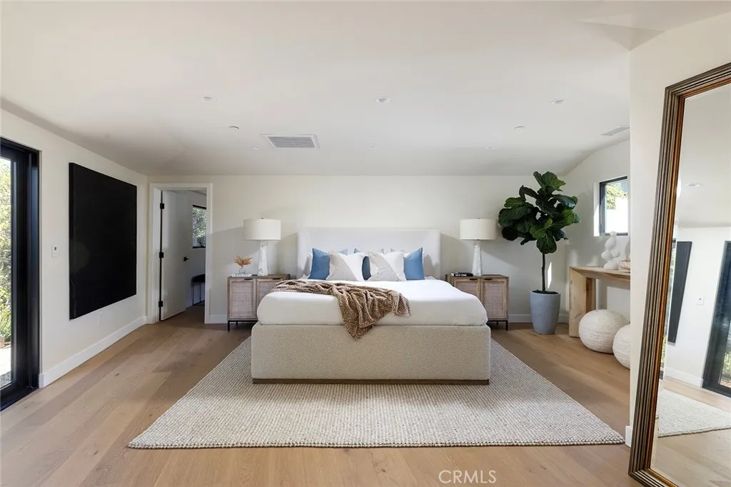 Perched on an approximately quarter-acre lot, this stunning 4-bedroom, 3.5-bathroom San Clemente home has been completely reimagined from the studs up, offering a seamless blend of coastal warmth and modern luxury throughout its approximately 2,978 sq. ft. of living space. Thoughtfully designed by Kaizon Interiors, every element has been curated to create an inviting yet sophisticated retreat. Upon entry, the large open-concept layout unfolds, revealing a spacious living room with a cozy fireplace, a dedicated dining area, and an elegantly designed kitchen, all flowing together effortlessly. Rich wide plank hardwood floors and high-end black accent hardware add warmth and contrast throughout the space. The kitchen is beautifully appointed with all-new Thermador appliances, quartz countertops, a stylish tile backsplash, pendant lighting, and a breakfast counter, balancing both form and function. The primary suite is a true sanctuary, featuring an ensuite bath with dual sinks, quartz countertops, a walk-in shower, and a freestanding soaking tub, as well as a custom-built dual closets for elevated organization. Three additional bedrooms provide flexibility, including one with a private entrance and ensuite bathroom, making it ideal for multi-generational living, an ADU, or a guest suite. Designed to embrace the indoor-outdoor lifestyle, the homes horseshoe-shaped layout wraps around a central courtyard, creating a private and tranquil open-air retreat. Multiple access points seamlessly connect the home to this lushly landscaped space, where a cozy firepit provides the perfect