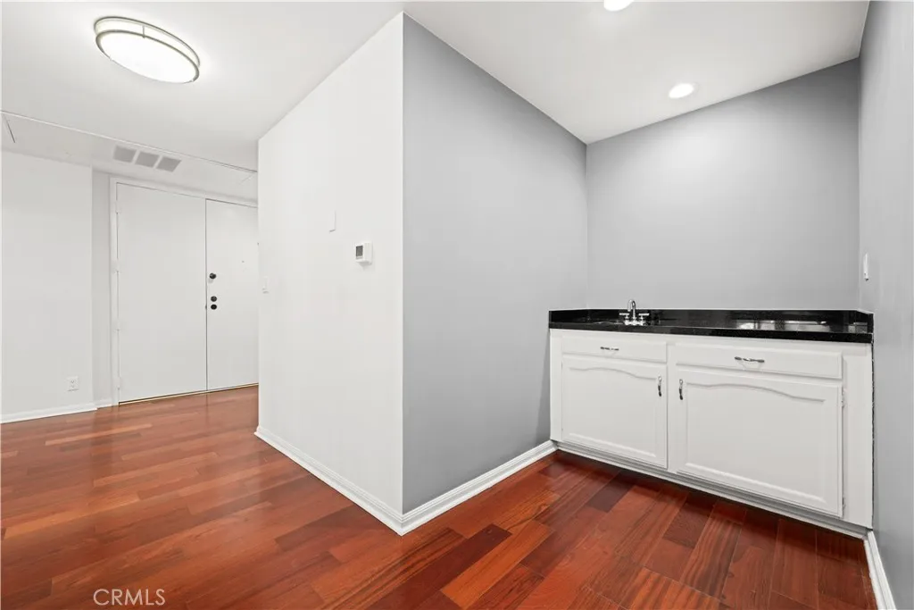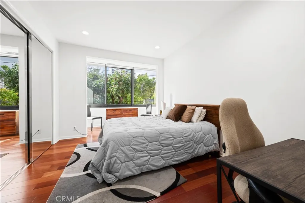 PRICE REDUCED! ~ A half block south of Wilshire ~ Welcome home to 1,628 SF of quiet living space touting large open rooms warmed by hardwood floors and two gas fireplaces. Unit 405 is a stunning west facing 2 bedroom, 2.5 bath, back unit. The living room and fireplace, the dining room, the kitchen, the enclosed patios and oversized windows, all conspire to create an exceptionally inviting space ready for a busy life. Imagine the holidays and celebrations! When it's time to rest, the main bedroom is a lovely, spacious, private retreat with a fireplace, two walk-in closets and a gorgeous remodeled en suite. The en suite has been beautifully redesigned with safety and accessibility in mind, featuring a large, open curbless shower. There's also a second, beautifully remodeled bath across the hall from the large, bright guest bedroom. Off the foyer, a third remodeled half bath has a touch of whimsy in its modern jungle design. Both bedrooms and the living room have plenty of open space and views of neighboring trees and blue sky outside every window. This delightful home has many practical attributes, too: high ceilings, central heat and air, plenty of closet space, recessed lighting, in unit W/D, a breakfast nook, stainless steel appliances, granite countertops and a gated garage. Plus, getting groceries from car-to-kitchen is simple when the parking spaces are adjacent to the door entering the building. There's also a gym, pool and spa. Living in a winning location makes walking fun and commuting a breeze. Spend more time enjoying life and less time driving, with Westwood Vill